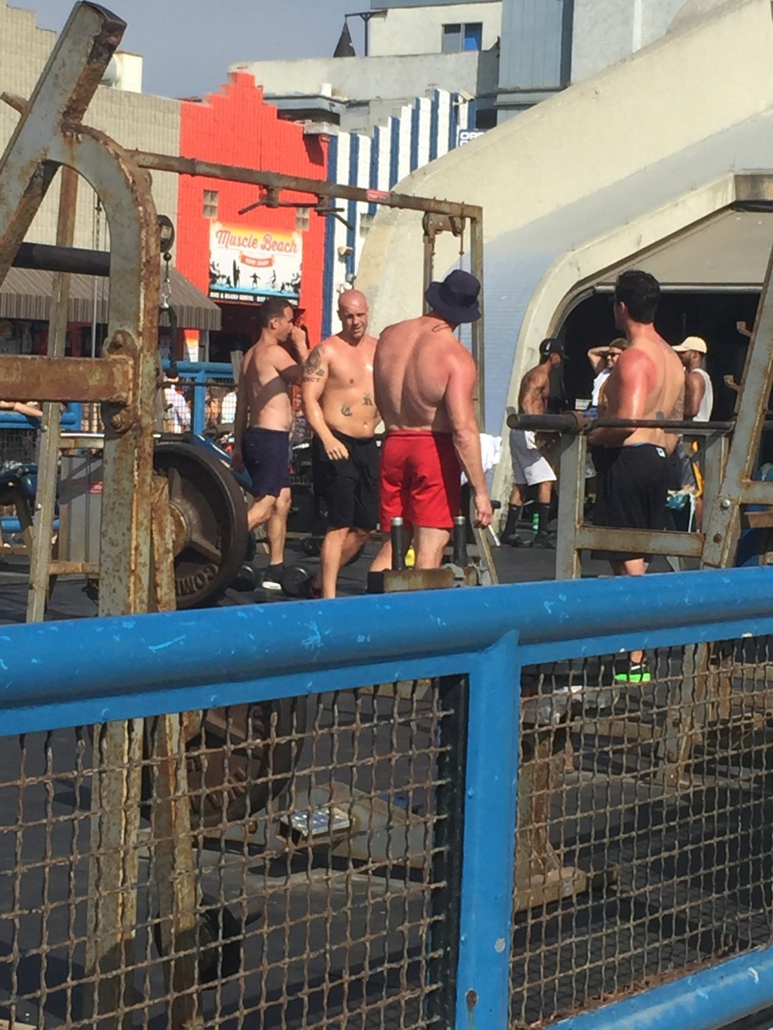 From the footy we hit downtown Venice Beach .20 minutes of driving and then a mad arse reverse park (tight , that’s how it is over here).Abbot Kinney rd , Venice Beach is the location.Its a seething mass of hipness ,tryhards and every other group imaginable. Uber ,uber cool , yep I fit right in . Wheatgrass shakes , free range hand reared chicken eggs on biodynamic farmed Himalayan humanely euthanised pork shoulder bacon on stone milled monk made bread from Carmel . Just some of the versions of eggs and bacon sangas on offer. Tops off abs out for men , no bras cleavage aplenty on a tight pair of leather shorts and heels for the ladies and your in the game. High end fashion , cutting edge street art and your talking Chapel street on juice.Down to the beach and its madness .Crazy , crazyarse busy. Hot , steamy , body odour mixed with coconut oil and ganja weed assault the senses. You have to tick this place off your list when visiting but i’l be in no hurry to return .