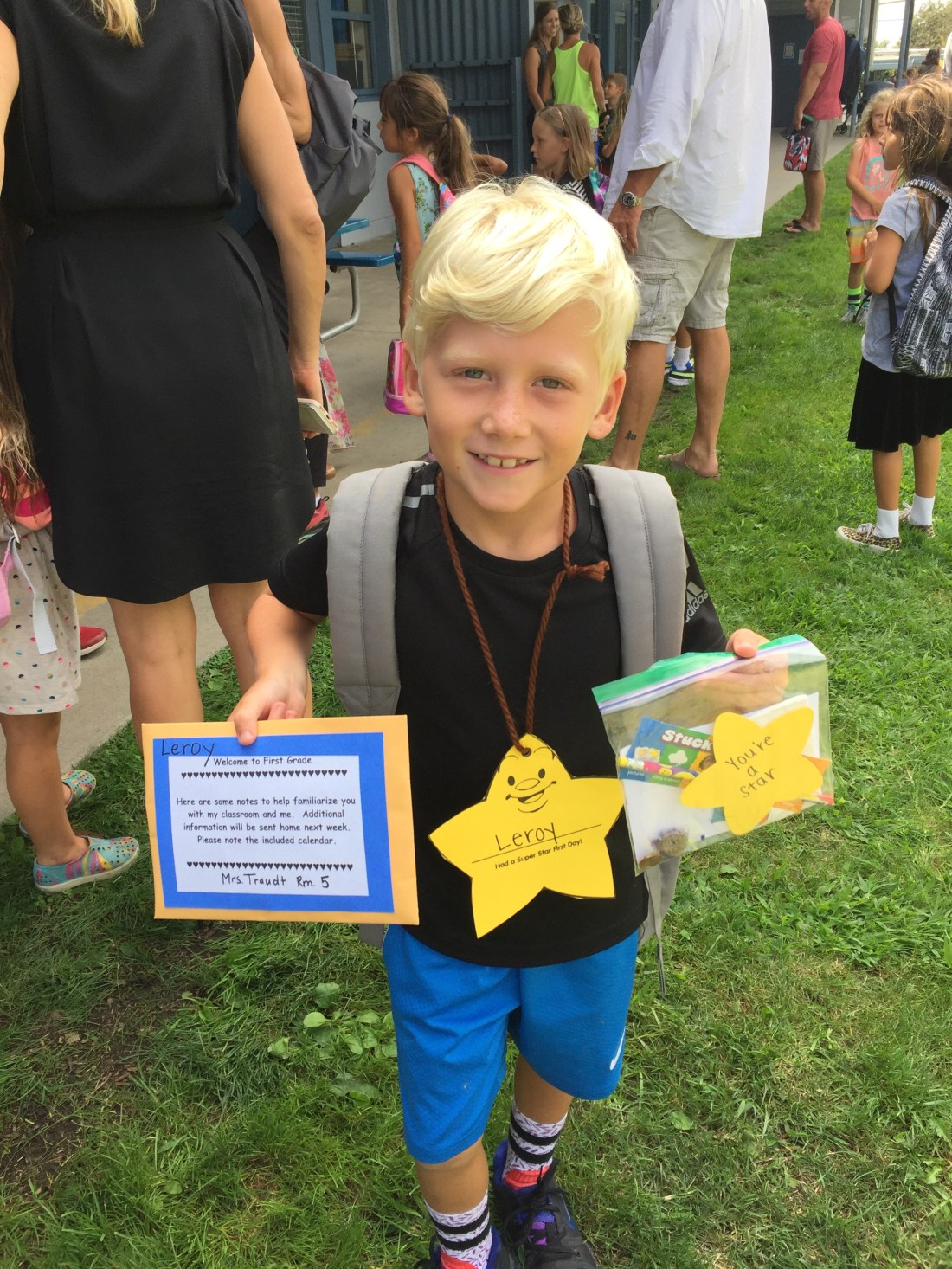 1st day back , couldn’t have come soon enough . On the 79 th day of Christmas my true love said to me ……,… get those little fuckers baaaack toooo scoooohooo ol. Yeah , that’s a nice tune . Organised and cool in a crisis , that’s me , sort of . Emma set the check list up for me last night ‘. Yeah, yeah , yeah got it , she’l be right’ , I said . ‘ I know you , you’l forget shit , you always do .’ Emma replied . ‘Nup not this time , this bad boy has got it under control ‘ , I replied as I winked and tried to get a handful of derrière. ‘That’s your problem,your good at being a bad boy at remembering shit , and also don’t forget to take plenty of pictures cause we want to remember this day . I’m shattered I can’t be there as I’ve got an important meeting I can’t break . I expect you to send me some good photos so I can show my friends at work ‘.Em replies . ………. Fuck ,I think she’s Nostradamus. It’s back to normal as Tex leaves at 750 after tormenting Leroy for the last half hour . He got out the door before my foot lifted him out. Got Leroy into the car but realised I didn’t have the earthquake kit . Back I go , leaving Leroy in the car , promising I’d be 2 minutes. 5 minutes later I’m back in the car with no quake kit . I’m in trouble now , gunna have to call Em and get the treatment .Nup i’l tear the place apart until I find it and then drop it back to school when I pick Leroy up . Traffic is hideous,I’ve lost time but I’m still earlier than usual . I head to my secret parking spot in a side street but I’ve underestimated the 1st day factor . The joint is chaos and after 10 minutes of circling back streets I park half a mile away and time is all of a sudden an issue .We only found out his teacher yesterday and getting there early to find his room, drop off paperwork , earthquake kit and formerly introduce ourselves to Mrs Traudt was mandatory. Everyone had their paperwork in little folders , not me . Fuck this is fucked up , now I’m really starting to feel inadequate, no folder and no kit . Hopefully the Aussie she’l be right factor might get me through . I can’t find his room and poor Leroy ‘s getting anxious. Me , I’m starting to panic. I go to several classroom doors but still no Mrs Traudt (trout).The bell rings for the kids to head to class but we can’t find a class , I’m traumatising Leroy . I have to do it .so I head to the office with my head down , feeling like a complete flog . Just before I go in I notice 2 ladies sitting on a table out front , the same ones that I walked past 4 or 5 times .I asked for Mrs Traudts room and they directed me to room 5 , that was what their purpose was . Of course it was you fuckwit . I take Leroys lunchbox out and there’s the earthquake kit at the bottom of the bag . You fuckn legend , I congratulate myself for a great fightback . Introductions , paperwork , all done , now just a couple of photos for Leroys start to grade 1 in the US . I tap my pockets but nothing . I know your not going to believe this but I left my phone at home . ……….,,, I’m sure she’s Nostradamus. I took a couple of photos at school pickup and it’s all good …………. No ,apparently Leroy didn’t come with lunch, so the school supplied him one today . Oh please stop , it turns out I’d dropped his lunchbox in another classrooms lunch collection area . I told you I’m organised