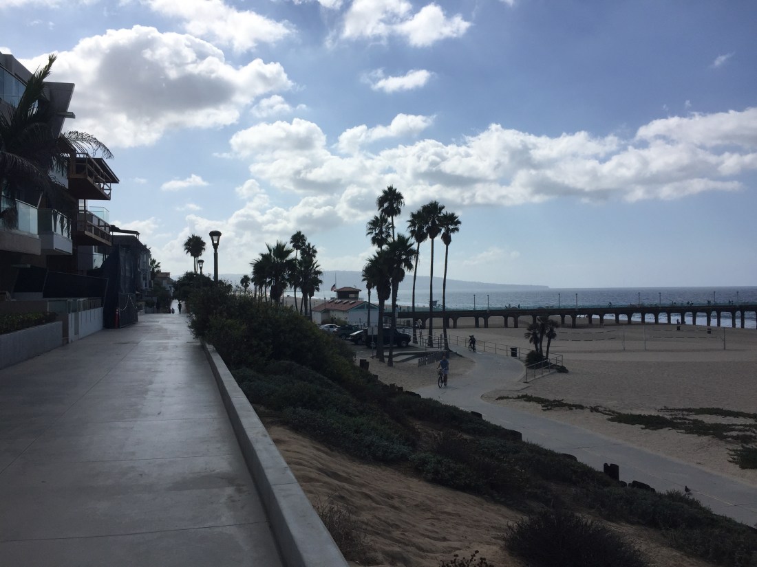 I’ve been scoping it for a while , been gazing down the line . How far ? Little dots flying out of the haze , zig zagging through the shimmer . They’re all old fuckers , surely I can handle it ?You wonder where they started and do they go all the way back ? I could drive it but it’d be tricky and I wouldn’t be able to see enough , gotta concentrate on the road . Some days (rare) you can almost reach out and touch it . Steely grey , no fog and wind , you know the days I’m talking about . You can stand at the top of Fishys beach and see Melbourne , Stkilda Rd all the way around the cliffs of Black Rock to the arc of sand that stretches along Patterson lakes . Malibu , Santa Monica and Venice Beach you can see them most days . Can I do it ,? Tex said his mates did it . I’m sceptical, when am I not? Today I headed off , I took the princess’s ugly half brother . The cruiser , all black , wide handle bars , fucking cool . I hit the strand and I get the nod from a few , this bikes got status . It’s Hermosan and i’m puting the bad boy through its levers . Sunnys , hat and black shirt ,mandatory attire if you wanna be cool and important , not some fuckin soft house husband . I’m gonna see where this path takes me. It’s pleasant early , straight and busy , bunched up beach mansions and old money .Plenty of path traffic , mainly retirees in lycra and wealthy tennis wife’s walking their designer poodles . ( yeah , I know we had one too . Chokkie was a fuckn legend ). Manhatten Beach , it’s still straight but the path is slowly arcing in , facing more South the further you ride .
