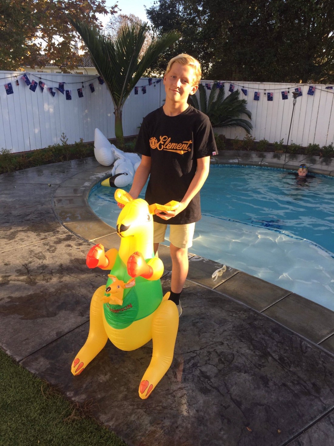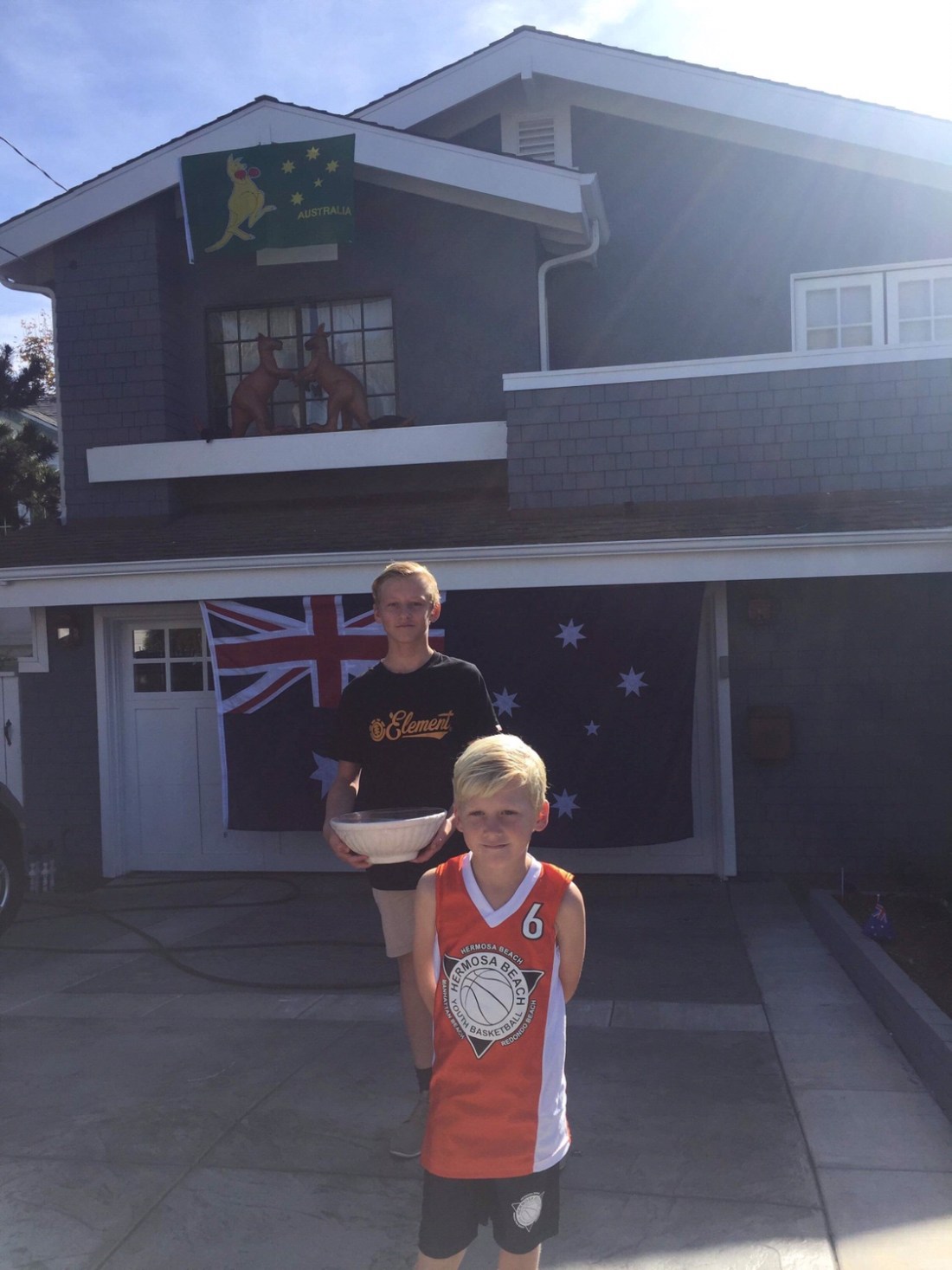. We rocked up to their joint in Manhatten Beach and were met with a massive Australian flag and boxing Kangaroo adorned on the front of their house. Yeah it was cool , nice dig , backyard , pool . The things we don’t have here but are used to back in Aus.