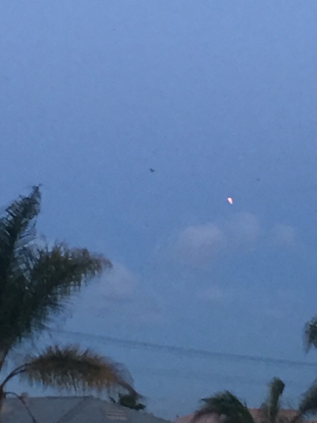 The clear blue skies of LA provide a great visual . It’s not just vivid sunsets buts it’s the aircraft that you constantly see . We are 15 ks from LAX and sit along LAs favourite open stretch . Helicopters by the shitload bowl along overhead , every morning at 930 the flying Kangaroo arches up into the horizon and an amazing array of people movers fly to Hawaii and Asia . Two eclipses , yep add that to the collection . This morning was the best treat so far , space x. Elon Musk launched his rocket just up the coast .
