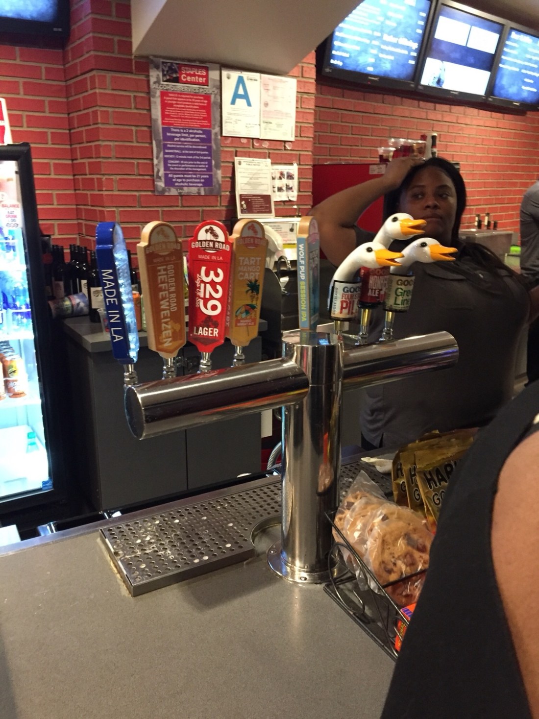 La live is a sporting , dining and entertaining precinct . We were pumped , the whole setup adds to the experience . You can eat and drink at a number of good restaurants, covering almost every style of dining , and the best part : you walk no more than a hundred meters to the Staples Centre . I couldn’t help myself and had to have a beer with dinner . ‘The wolf pup amongst the weeds’ ( yes , that’s it’s true name ) wetted the appetite nicely . Bring it on ! The basketball is an entertainment experience , there’s a family / loosen up and have a drink type atmosphere that massages you into …. Showtime !This feels like the theatre for the masses , no half strength crap beers , it’s the good gear . No political correctness here .