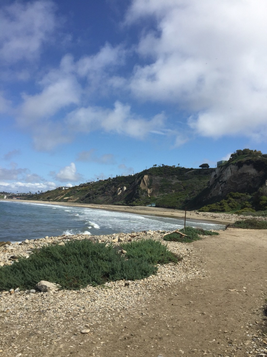 I previously rode a bike north all the way to the edge of Venice Beach , this time I’m heading south . Only this time I’ve decided to walk . Gotta week off from classes , so it’s time to tick the next box . You see , I keep looking to the rising headland of Palos Verdes , thinking I’ve gotta check it out . There’s a building on the horizon with some kind of rock wall , but I also know there is a surf spot called Haggertys . On the rare occasion there’s enough swell I’l look across and see small white balls rolling along the raised cliffs … and wonder ? I ‘ l get there sometime . Today’s the day . It’s actually very cold , 16 degrees , sunny with a bitter ocean wind . Very Melbourne .