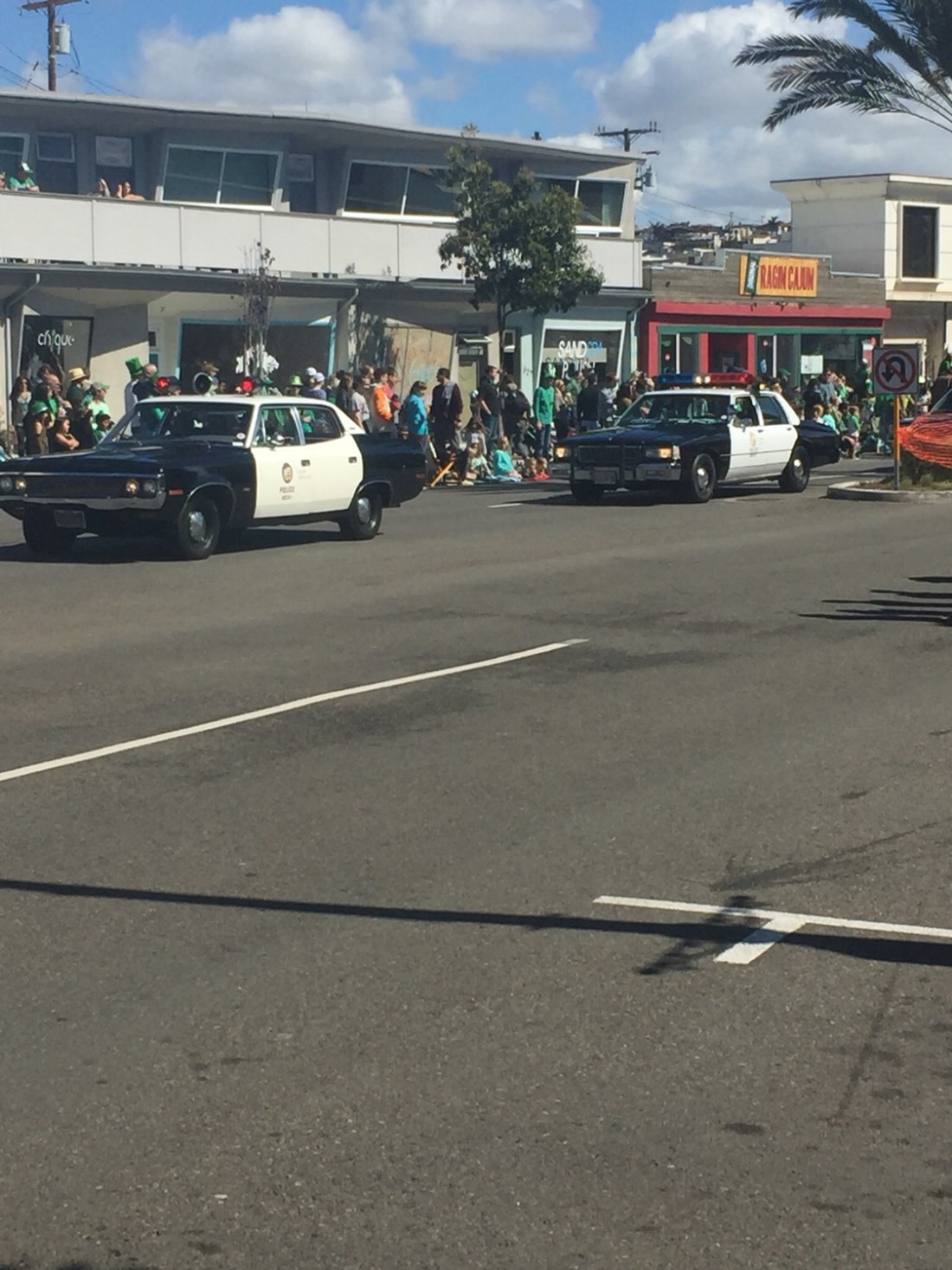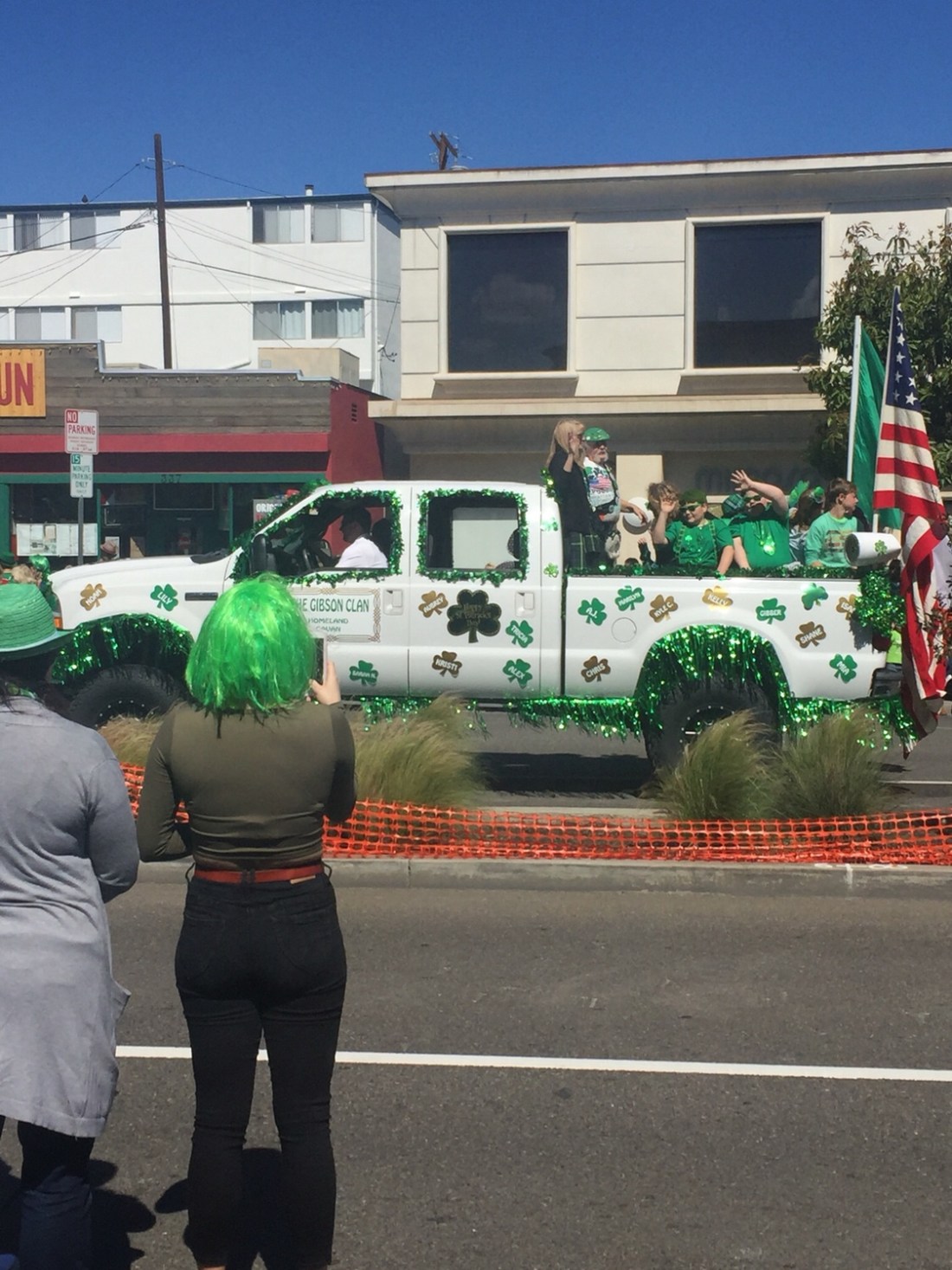 You don’t realise how big this day is in the USA , it’s big , it even rivals 4th of July . I know that sounds a stretch , but here in Hermosa Beach it’s all out . From the moment I get up and run down the beach for a look at the conditions there’s the early starters , already dressed in green heading towards the bars for an alcohol fuelled breakfast . At 11am the whole town is shut down for the annual St Patrick’s day parade . The streets are lined in green , us too .Brass bands , dancing troupes , vintage police cars and any excuse to march proud in your green get up . It’s all in and embraced when it comes to festivities.
