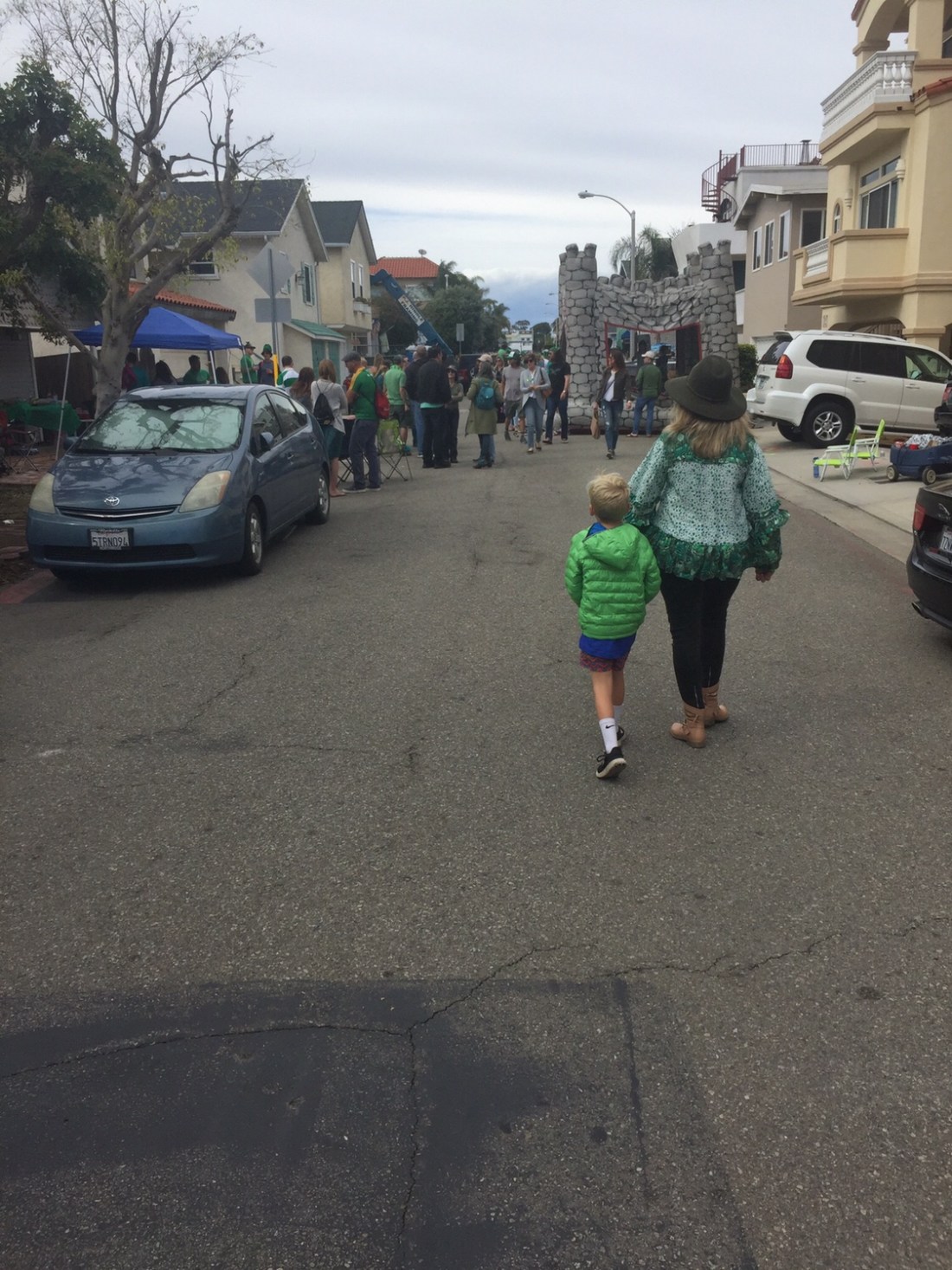 You don’t realise how big this day is in the USA , it’s big , it even rivals 4th of July . I know that sounds a stretch , but here in Hermosa Beach it’s all out . From the moment I get up and run down the beach for a look at the conditions there’s the early starters , already dressed in green heading towards the bars for an alcohol fuelled breakfast . At 11am the whole town is shut down for the annual St Patrick’s day parade . The streets are lined in green , us too .Brass bands , dancing troupes , vintage police cars and any excuse to march proud in your green get up . It’s all in and embraced when it comes to festivities.
