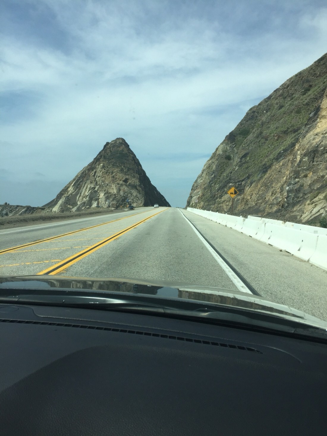 After rounding some captivating coastal rock we head inland through a mountain pass before we descend into Ventura .