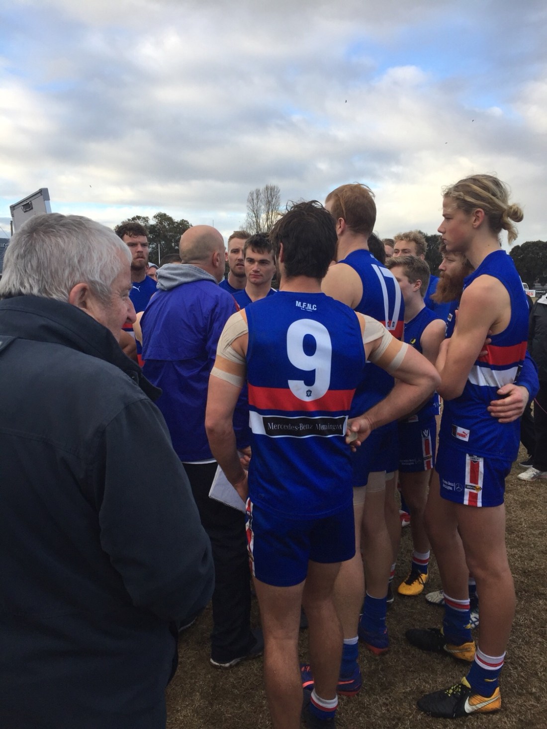Would it be any other way ? Back to Mornington and whadya do ? Has to be the local footy . Drinking beer , cold , listening to the three quarter time huddle.
