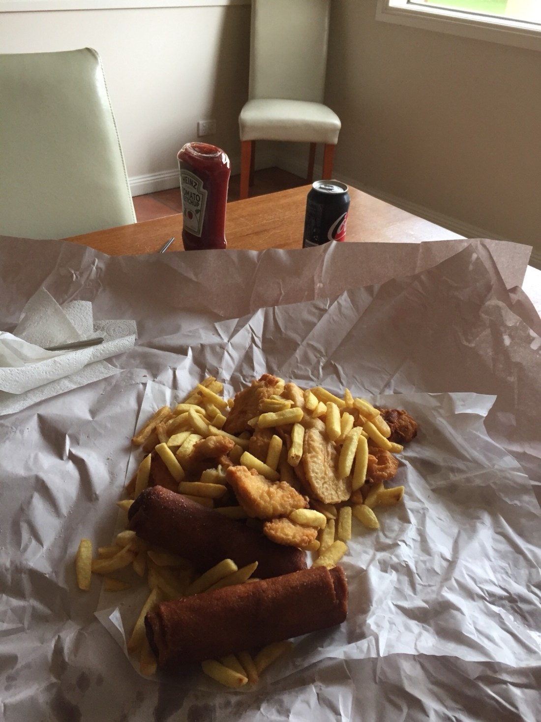 A simple pleasure like fish ‘n’ chips is a ‘once in a long time ‘treat . Yeah I felt a little guilty about the calories , but fuck it , it’s been a while and one day it’ll be a regular past time again . The MCG , the old house of pain for a Stkilda supporter is next . I drive mum in , knowing full well this could get ugly .