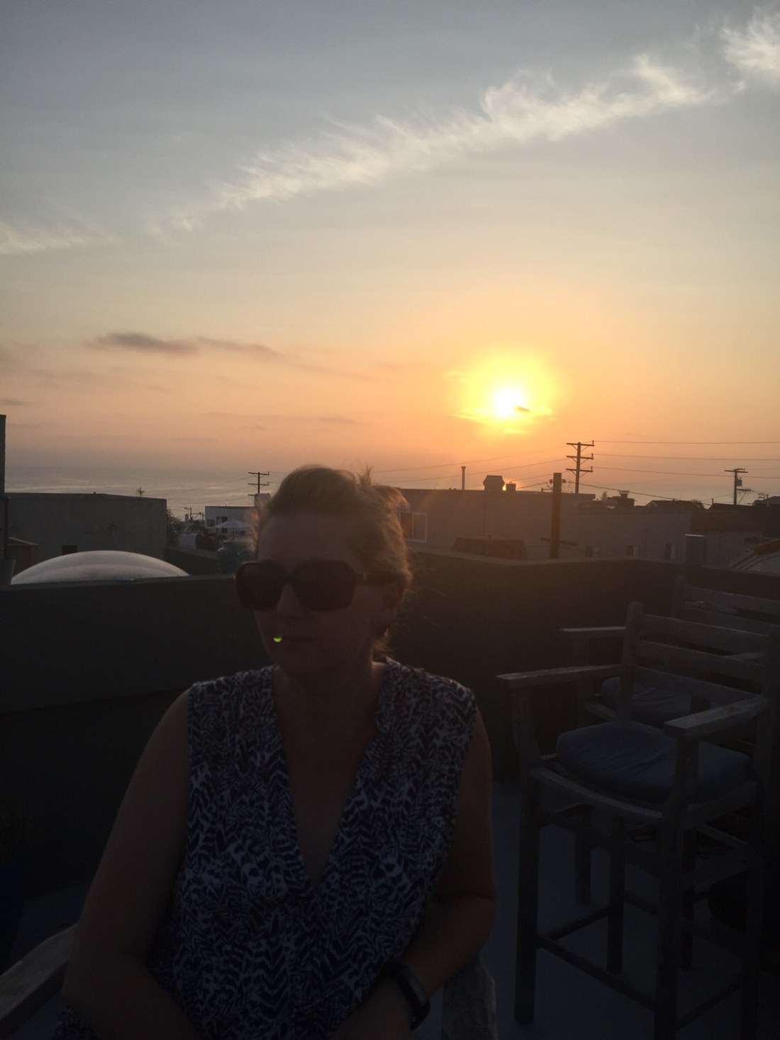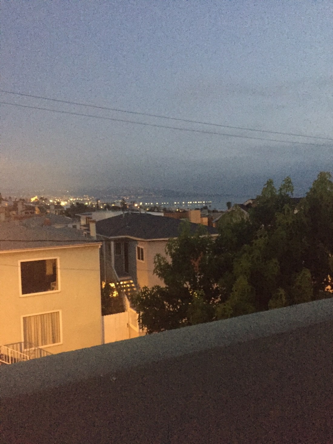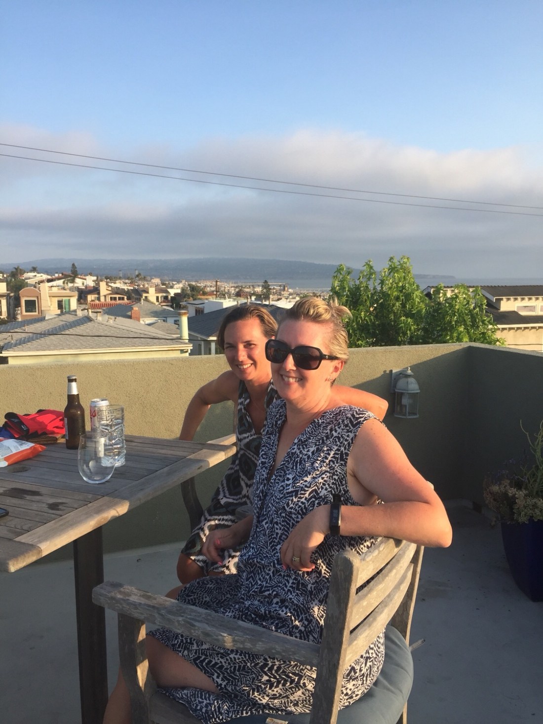 . He lives up the back alley and often runs up to see if Leroy wants to play . The alley is ugly visually but it acts as a bit of a sanctuary from the traffic and the other neighbour at the front of our house .Bill is that gregarious guy that seems to know everyone and always seems up and about . Kim is laid back and natural . You look up the alley and they’ve got a serious pad . Saturday night saw us invited . Up stairs onto the balcony we shifted and it’s here that you see the best of Hermosa Beach .