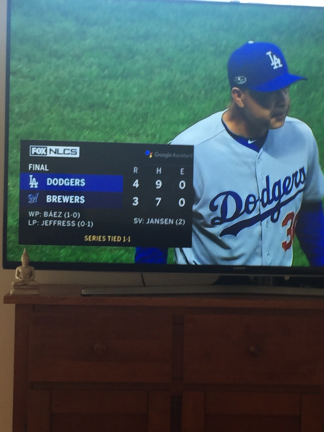 I can’t move . It’s the fear . The Dodgers , I’m all in , can watch them all day . I can’t believe I’m in this space . It’s American sport for Christ’s sake , and baseball ! It’s not the AFL but the LA hype and that everyone else is on them too has me glued on . I’ll always follow the Dodgers from here on in . You know the feeling ? It’s in your gut . You wanna see your team win . You know they’re good , but you know the other team is too and you know outside of LA everyone wants you to lose . Shit , this must be what it’s like to barrack for Collingwood . The weather’s cleared up and we should be out n about .