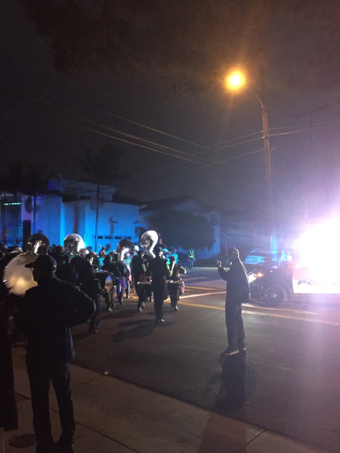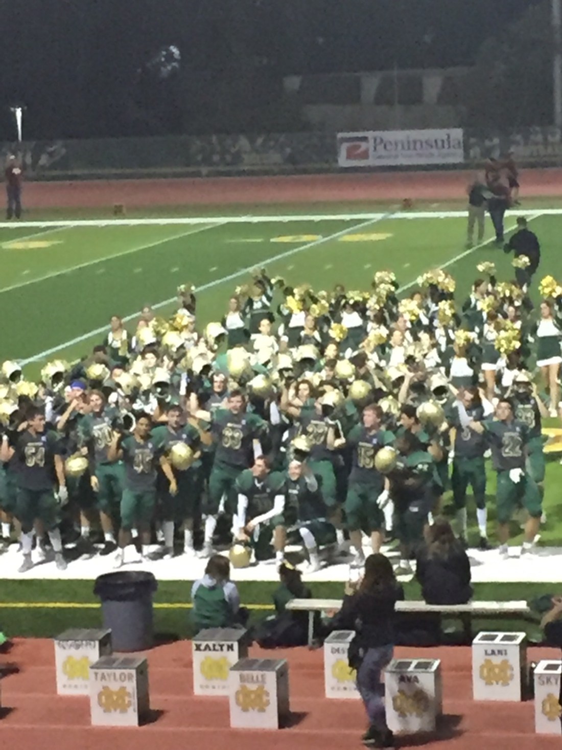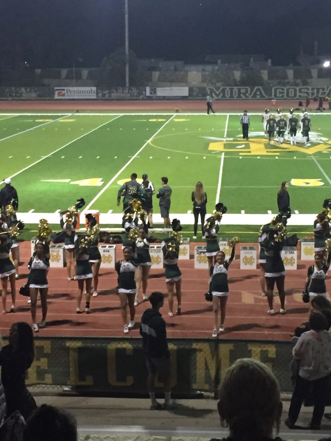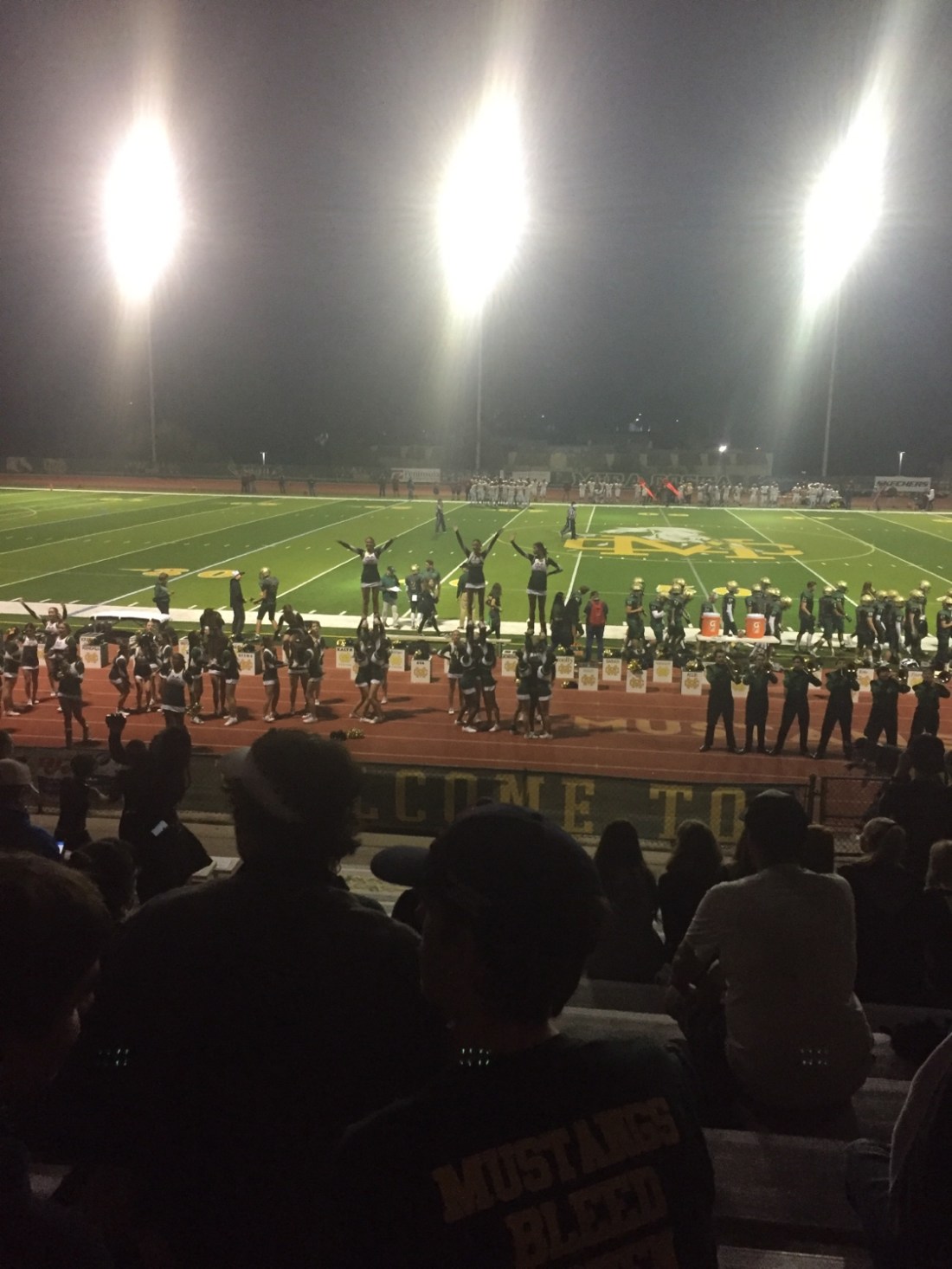 Wesley’s commentary and high fiving kept us entertained . Normally you can’t get boo out of him . And then there was Tim ; verbally replaying moments with his beautiful fake American accent , standing up slapping high Fives and playful sledges that had the crowd around us laughing . Sledging has to be done with extreme caution over here , Tim had it down pat , relying on Aussie innocence and lines from the many American films he recites . By nights end Mira Costa had a good win ;there was nearly a scrap on field that had Tim and I straight on our feet , I looked around and nearly everyone was still seated , we had a laugh as Tim commentated to the crowd on how the event unfolded .At half time the field was converted into a giant stage ,with fake trees , giant moon , dancers and performers putting on a show for the crowd . From finish to end there is non stop entertainment,this is the American way . The jocks playing , the girls dancing , musos playing , drama kids acting and cheerleaders cheering . Nearly every kid has a chance to be centre stage , which is something I admire . It builds a great school camaraderie . We ate some horribly shit food , and that had me wondering how a hot Aussie meat pie would fare here . I say it’d sell for sure . Alcohol is a no go , but judging by the men lined up to hit the bathroom ( dunnies) it must come in by flask or other means , shit I missed that one .
