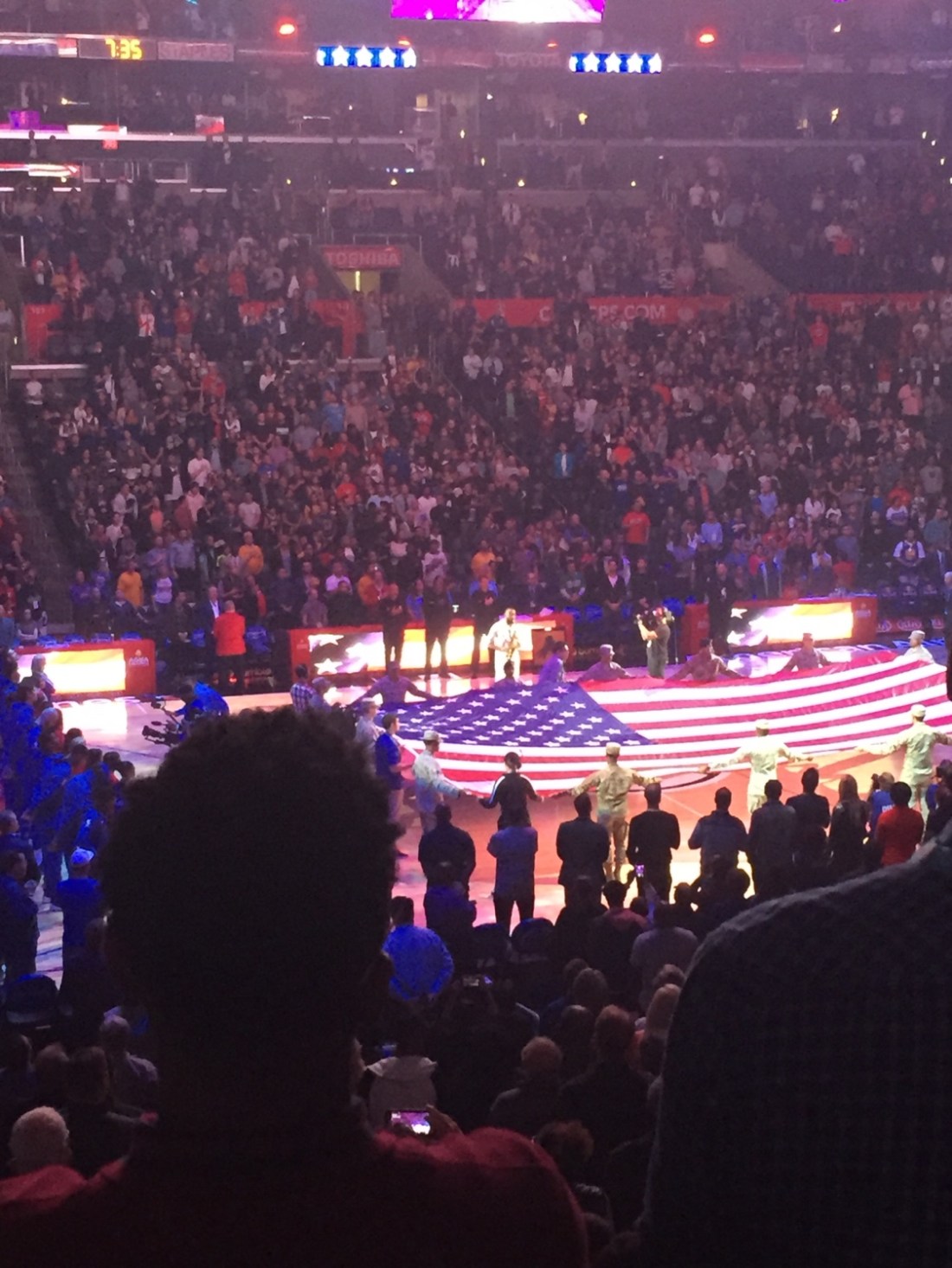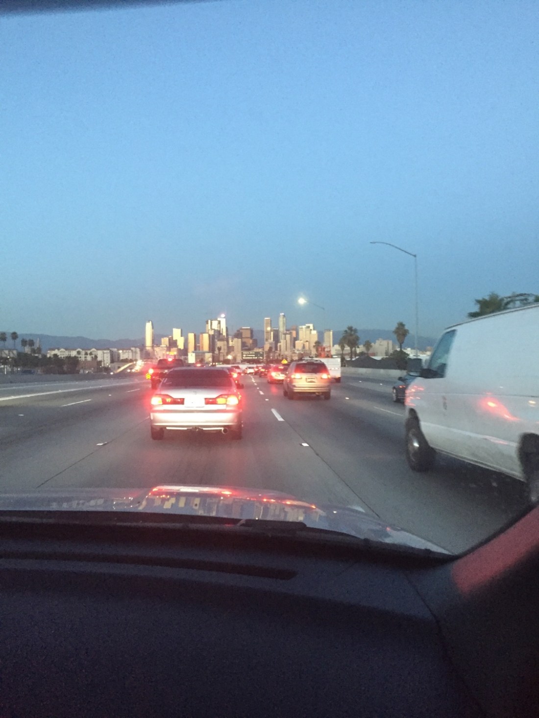 We are on board the Tim train again . Tonight it’ll be the NBA , the Clippers v Golden State Warriors. In what would be the only setback for the night; there’ll be no Steph Curry , due to injury . Emma got the tickets and Tim does all the chaperone work . Perfect . The approaching drive at dusk sets the scene perfectly.