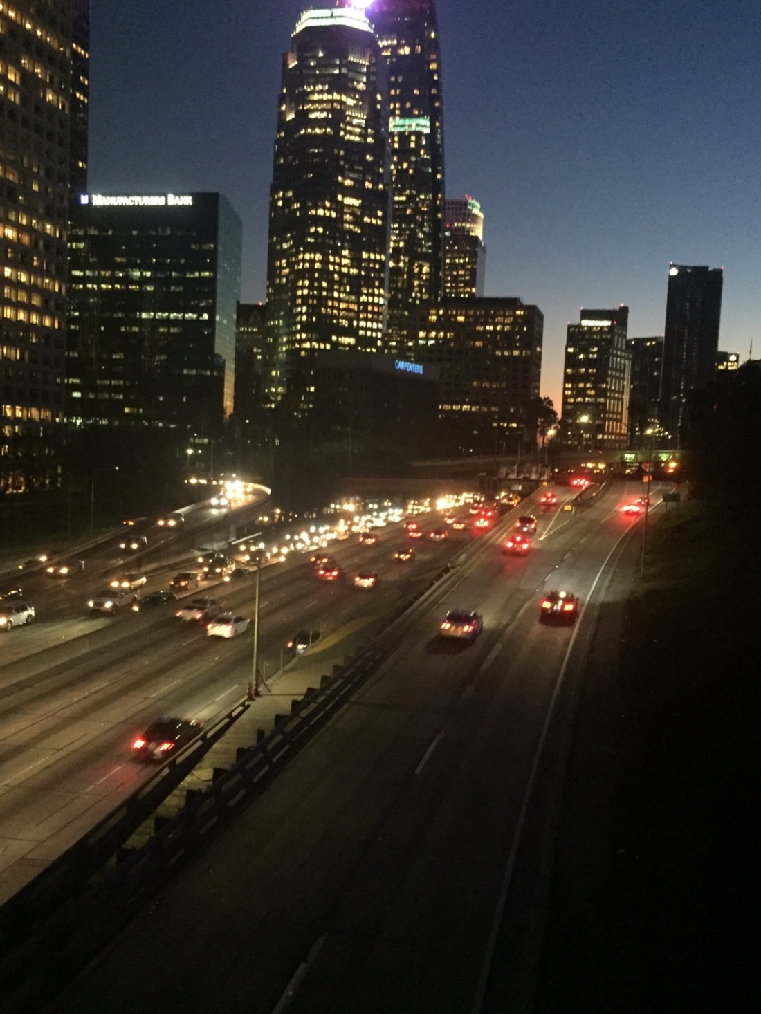 Downtown during the day is pretty uninspiring , but at night it transforms . We get in early so as Tim can capture the jungle on dusk , and it doesn’t disappoint. I can’t wait to see how some of the photos come up . Sitting on overpasses watching a sea of lights streaking down freeways with the lit up backdrop of the LA skyline , awesome