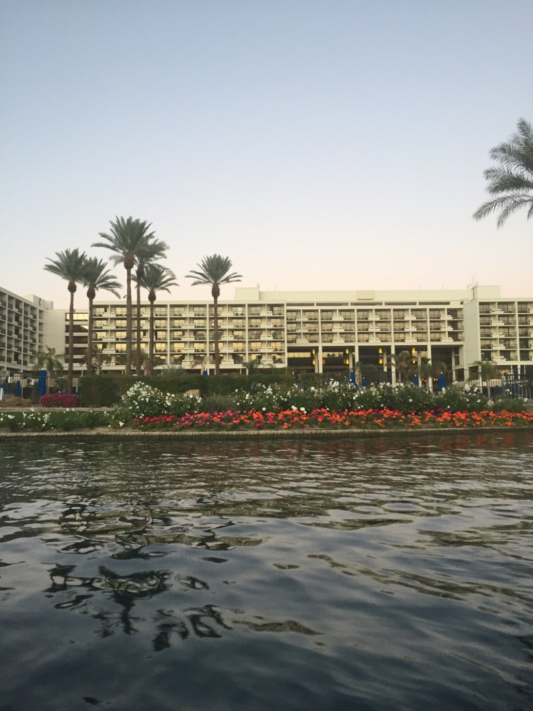 Emma has us in the JW Marriott hotel . It has the lot ; golf course , mini put on real grass , a surrounding lake and moat