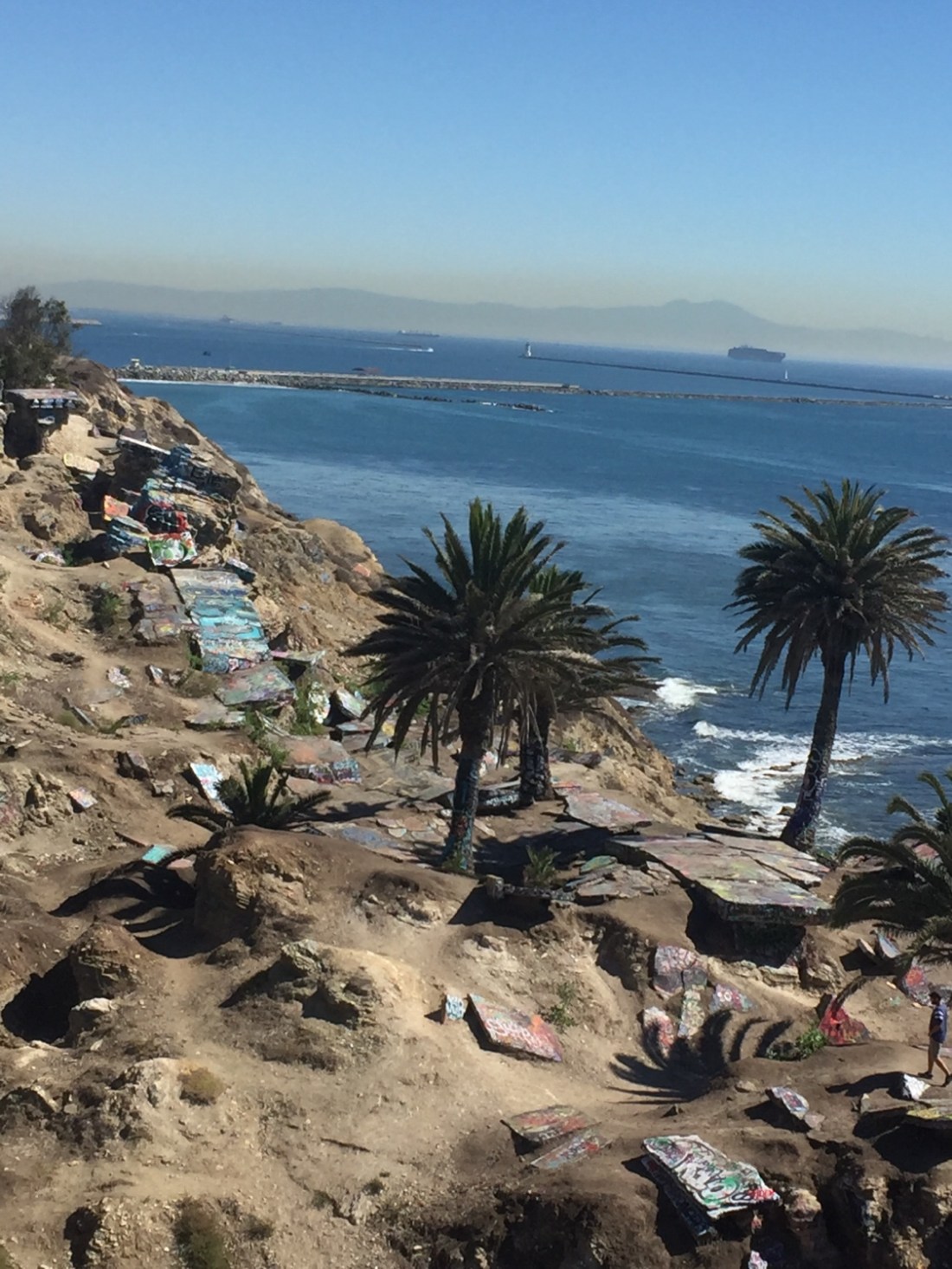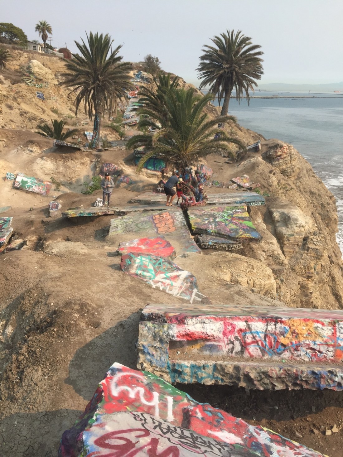 It’s here housing and structures slipped into the sea in 1929 . It’s deemed unstable and closed off to the public but it hasn’t stopped kids from adding graffiti over the old deteriorated concrete buildings . The graffiti has made this a cool modern art location sitting on cliffs at the foot of Long Beach .