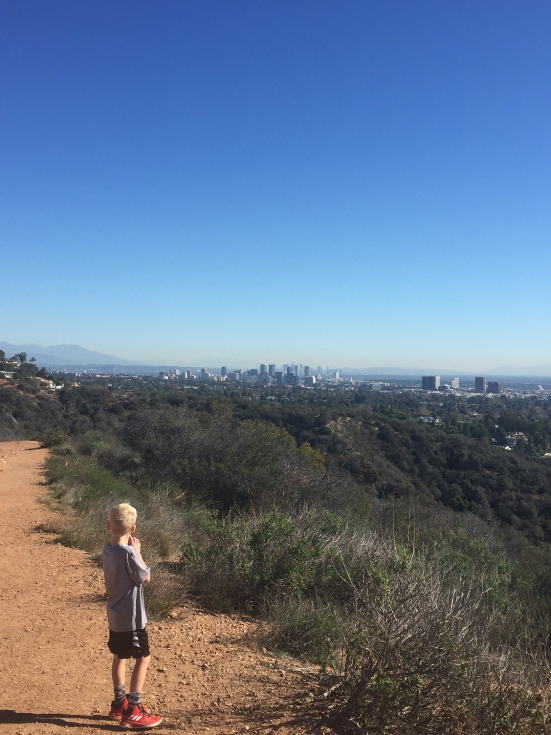It’s a relief to find green space , trees and tracks . To have a vista with mountains and not concrete . Dirt tracks through coastal scrub and the subtle smell of ocean salt with rushes of pungent eucalyptus . It’s been tough living here through Christmas and New Years , but this park brings a smile to my face and almost a tear to my eye . Will Rogers Park …….. We’ve gotta get back there