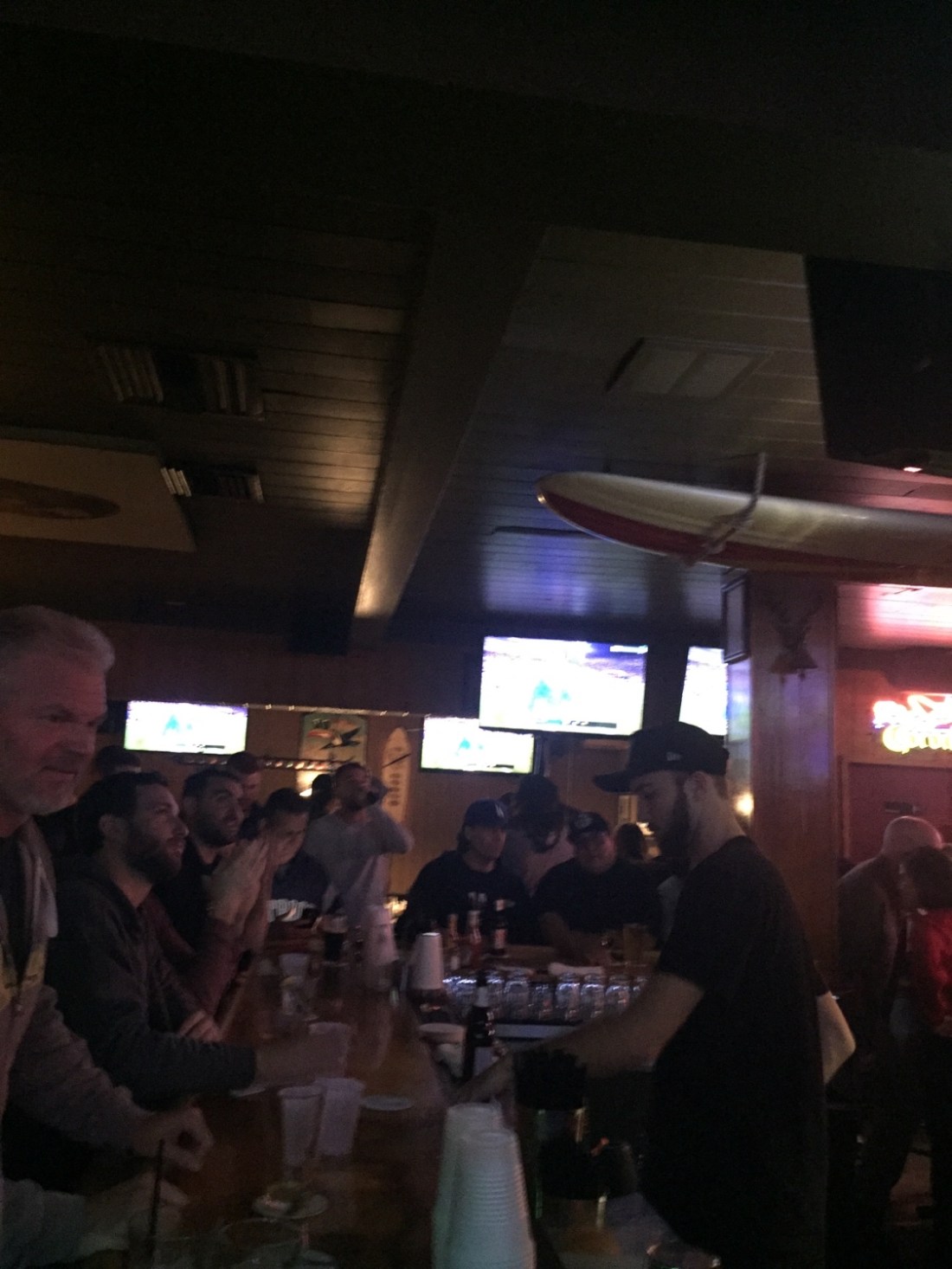The North End . A bar that is 200 yards south of our our place . A cool joint. We walk in and snag a couple of seats right at the bar. Perfect , of course Marcus doesn’t have any money . I end up offering to shout him a meal . He of course chooses the most expensive meal on the menu .$14, still cheap but there’s principle in being humble when someone offers to buy you dinner . This doesn’t apply to ole mate , fortunately he doesn’t drink as he is an alcoholic ( of course he is ) . This is what I love about US team sport , most cities have only one or two teams as a maximum per sport . It means that at your local there’s a whole group of patrons united . The North End was rocking as my Rams got the job done . Ole mate was his annoying self , talking across the top of me , trying to chat up the bar staff for free drinks and even getting a guys phone number who had asked for mine . We had struck up a conversation on the back of my accent. Tony is a Pom and logistics manager in the movie industry. He wanted to get my number so we could meet up next week for the next Ram game , but ole mate had to be included and immediately started embarrassing me by asking for a job . I knew he’d be a nuisance. Poor Tony will now be pestered with texts and phone calls from ole mate . Emma warned me . Good luck Tony , hope to see you next week but I understand if you don’t turn up after ole mate calls you 20 times over the next 7 days
