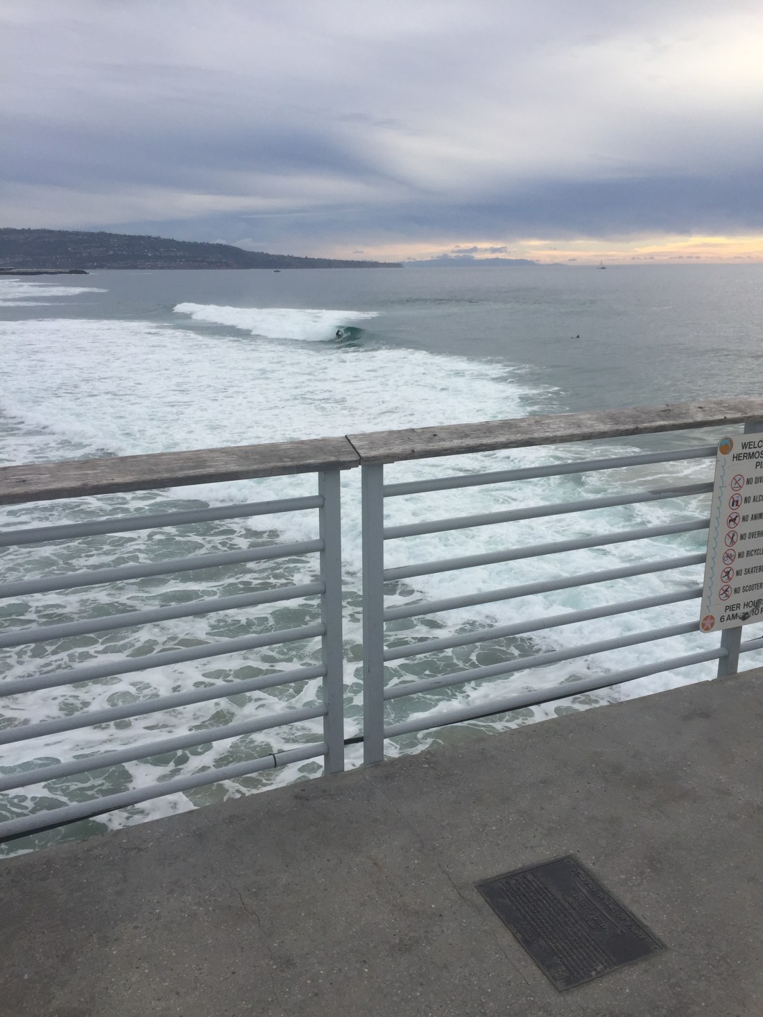 It doesn’t have that roar edge that you instantly identify when scoping out surf on the Mornington Peninsula . You know what you’re up for most of the time in Victoria, here these waves don’t show their teeth until you’re out there . The water temperature is still a pretty pleasant 16 degrees Celsius , actually warmer than the air itself . Booties are not required , but the cold off shore winds are bone chilling when you sit still . The heart rate has been pulsing like a blender at times . The sand bars are not solidly formed , a soft wave may come from one direction only to be followed with a rolling bus surging from the opposite . There are nearly never any rips but now they’ve surfaced and it is these conditions that create the best waves . The waves tend to break right through a middle of a rip , back home the rip would be in the Chanel where the soft water lies ( hence their extreme danger ) .You’l often find yourself paddling like a madman to get closer to shore only to look around and see a couple of large bombs rise up out of nowhere , you then have to scramble back out to try and get under these waves . I’ve had a couple of serious hold downs when caught in this situation . These type of conditions can actually hold some serious size ,6 to 8 foot wedges would scatter the pack , rattling ones confidence . The lulls would then produce excellent , comfortable riding conditions . Gaining composure has been key , a couple of times I was shaken up enough to nearly concede . Out of the woodwork a procession of hot young kids has been regularly surfing my breaks . It’s fair to say I know I’m 49 . My back , shoulders and knees know they’ve been busy , so has the heart and the sphincter valve . ….. Winter , it’s real , even in LA , so are the waves .