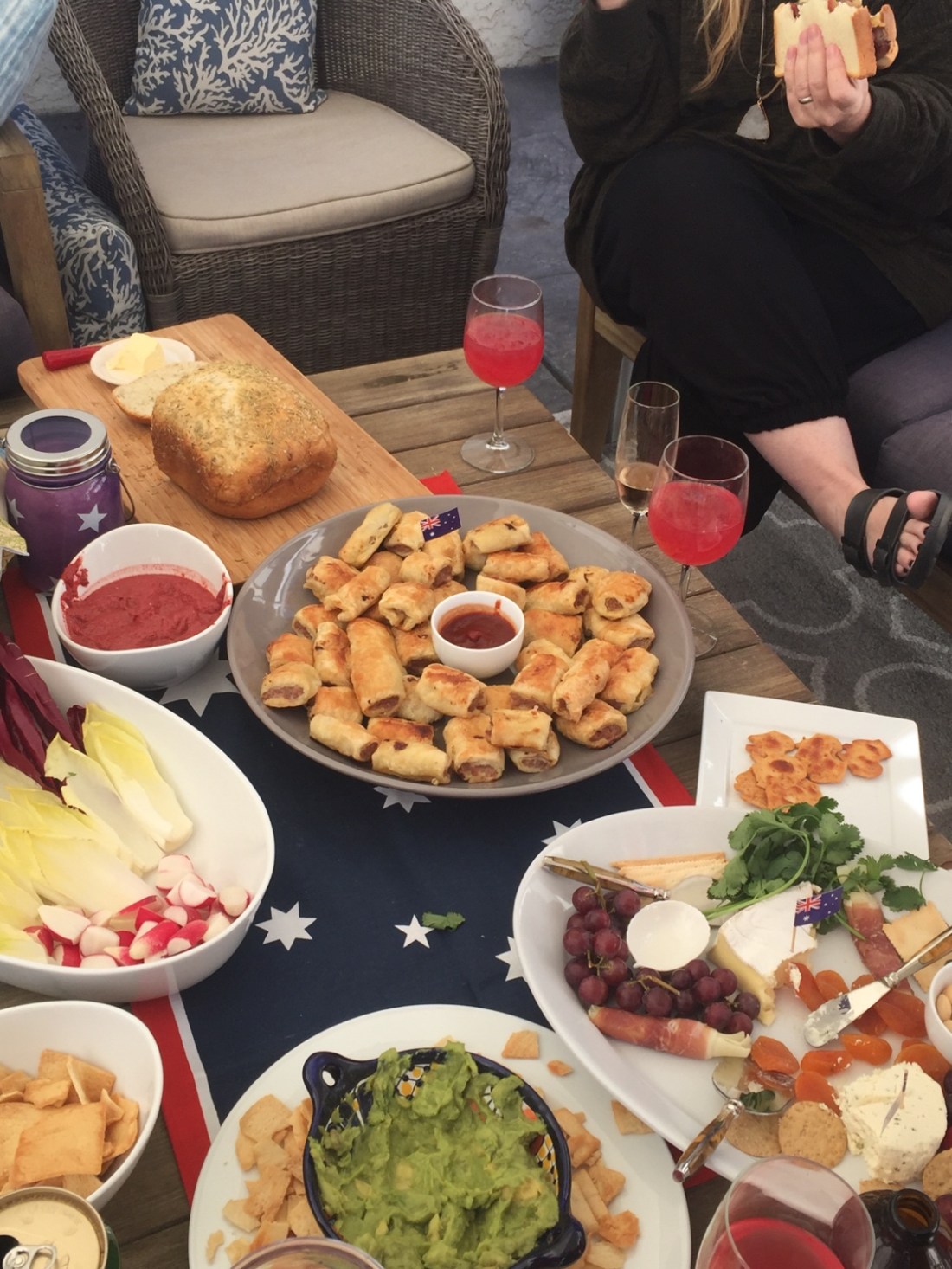 Oh my god , sausage rolls . I had to contain myself and only down a dozen , I’m salivating as I write this a day after . Pavlova , Tim tams , caramel crowns , Australia shaped bbq shapes and even a hybrid style snags in unsweetened white bread . The music : Powder Finger , Tame Impala , INXS , Ice House , The Hoodo Gurus …… shit I miss those sounds , and to think this stuff is virtually unheard of here . They ( yanks ) are missing out . Best of all it’s the people . Your own kind , you yearn for them , collect them and drink with them … on Australia Day . Damo and Maddie , Kaz and Frank , Joe and Aliza , Chris , Jackie and Gerard . There’s some Aussie names in that lot . Cheers , to Australia Day