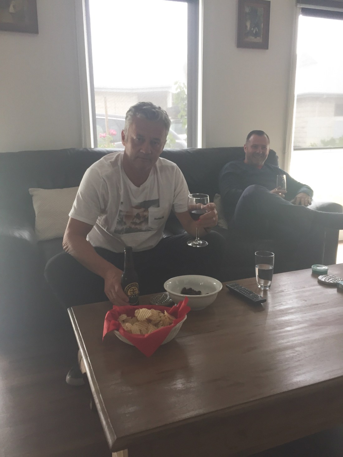 Within 2 hours of settling back home we are already at a friends house watching the football drinking beer , port , wine and more . Geezus , just 24 hours ago I was on the other side of the world and now I’m here .