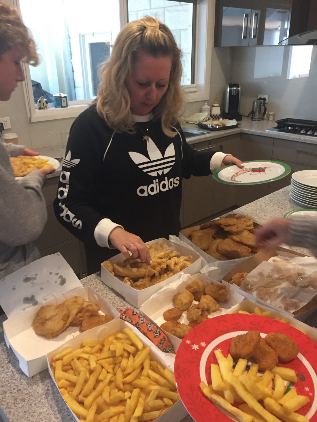 22 hours of travel and we’re back where it all started . Driving the freeways with little traffic , rain pelting sideways , the windscreen wipers at full speed , complete whiteout conditions, but there’s a sense of calm . We know where we are headed , the BP servo , We get there , Emma and I look at each other sideways with a glint in our eye and a skip in the heart beat . Tex is even declaring something better than what the Americans dish up for the first time since he left . Leroy? Yeah nothing changes for him , it’s McDonald’s as usual . Tex gets Oporto chicken and chips , and admits that it’s true , this stuff is so much better than back in LA.. Emma and I ? This picture says it all