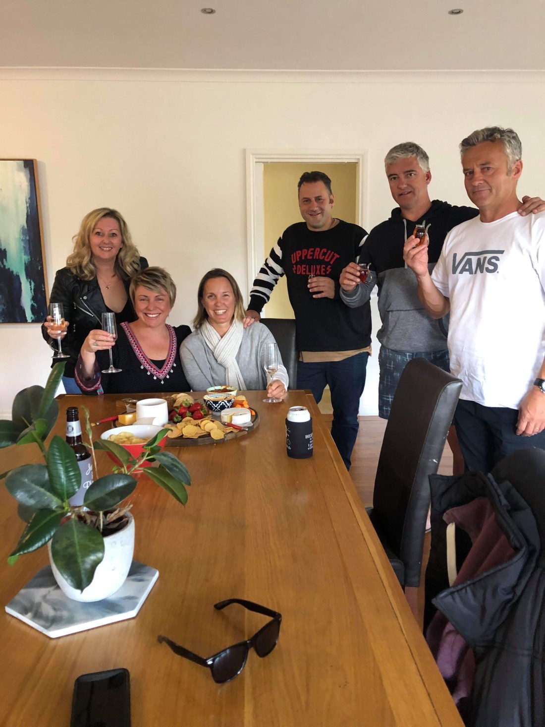 Within 2 hours of settling back home we are already at a friends house watching the football drinking beer , port , wine and more . Geezus , just 24 hours ago I was on the other side of the world and now I’m here .