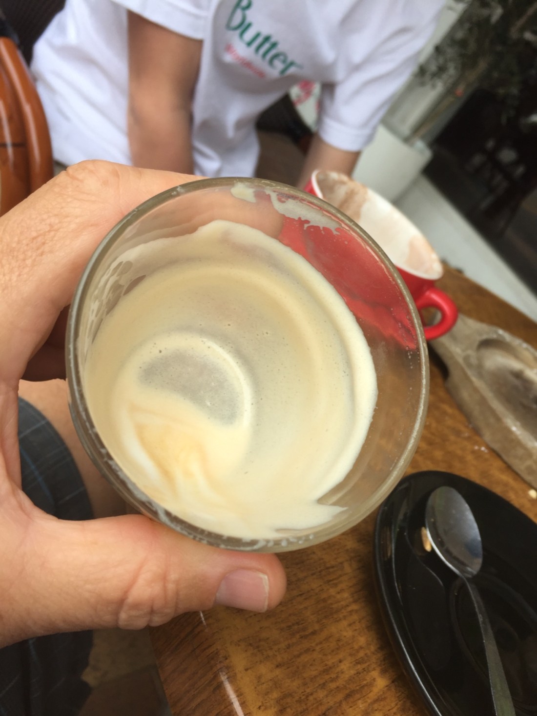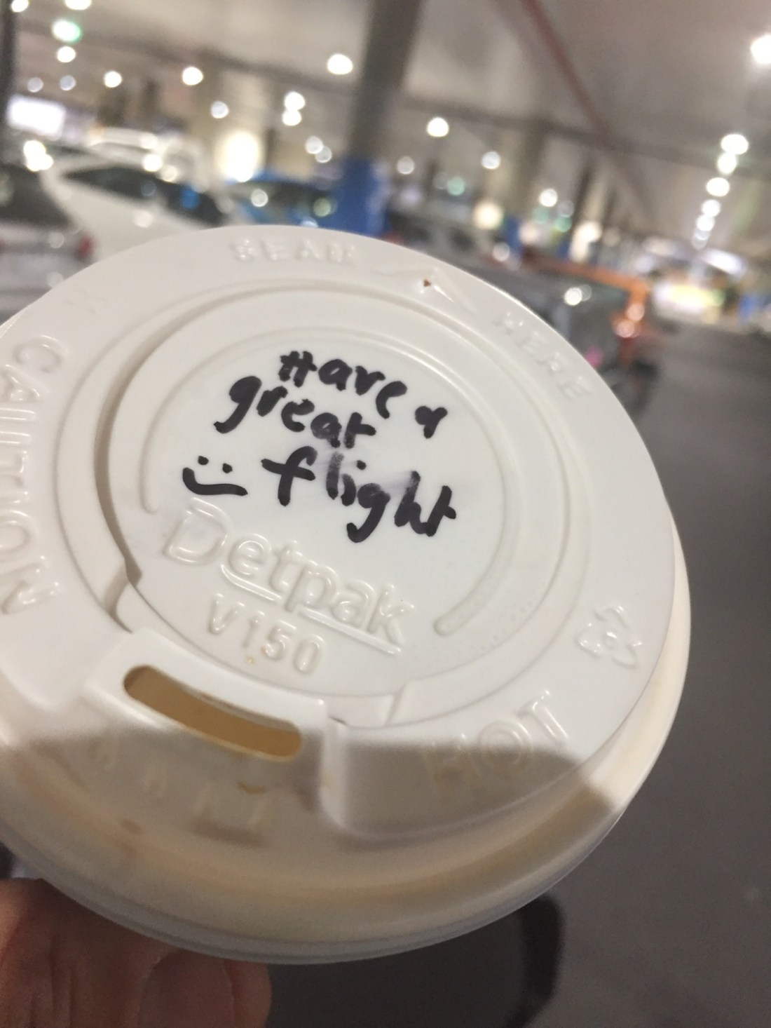 My last coffee on the way out , Via Boffe . Gotta luv the conversation and the little message with my latte
