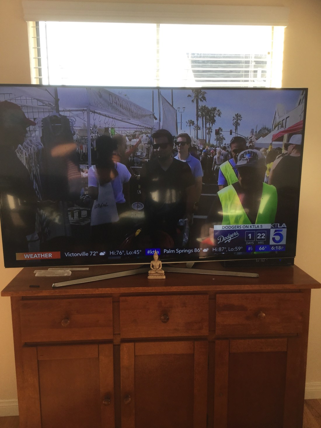 Yep ,it’s on the news and only a 1 mile walk from our house . Yeah ,look at the tv closely and you can see the temperatures in Fahrenheit and the Dodgers logo in the corner . Fuck , it’s only when I look at this picture that I shake my head and say , this is in our joint … in LA .
