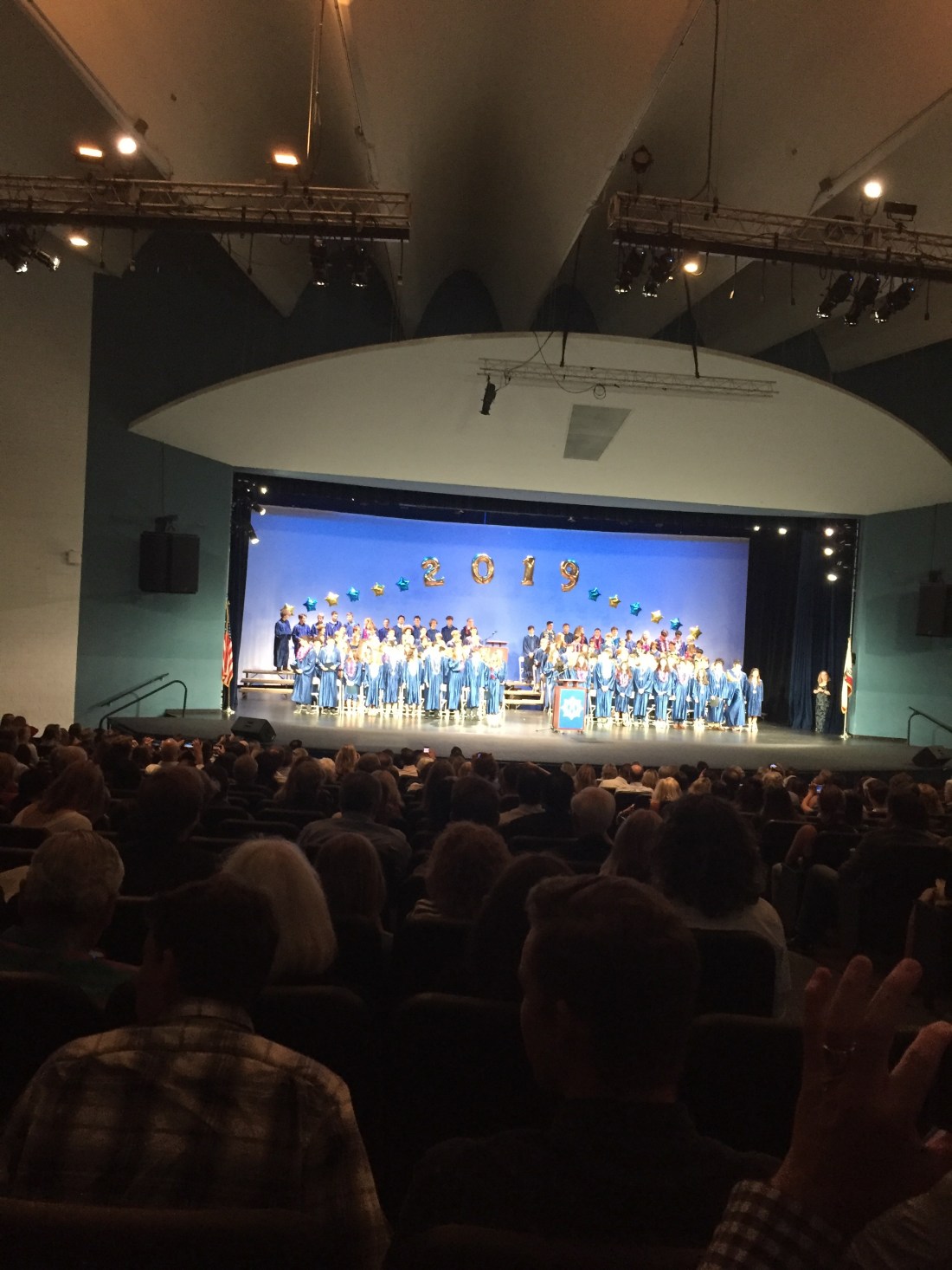 Eventually we get into the auditorium, it’s impressive , it’s large and I mean seriously large in comparison to Australian schools . The school brass band plays the tune ‘pomp and circumstance ‘ with the kids drifting down the aisles before filing into their seats on the main stage , remember they’re only year 8s . We then all rise to our feet to ‘the pledge of allegiance ‘, another novelty that I laugh to and enjoy ;you can tell us Aussies don’t take our patriotism too seriously .