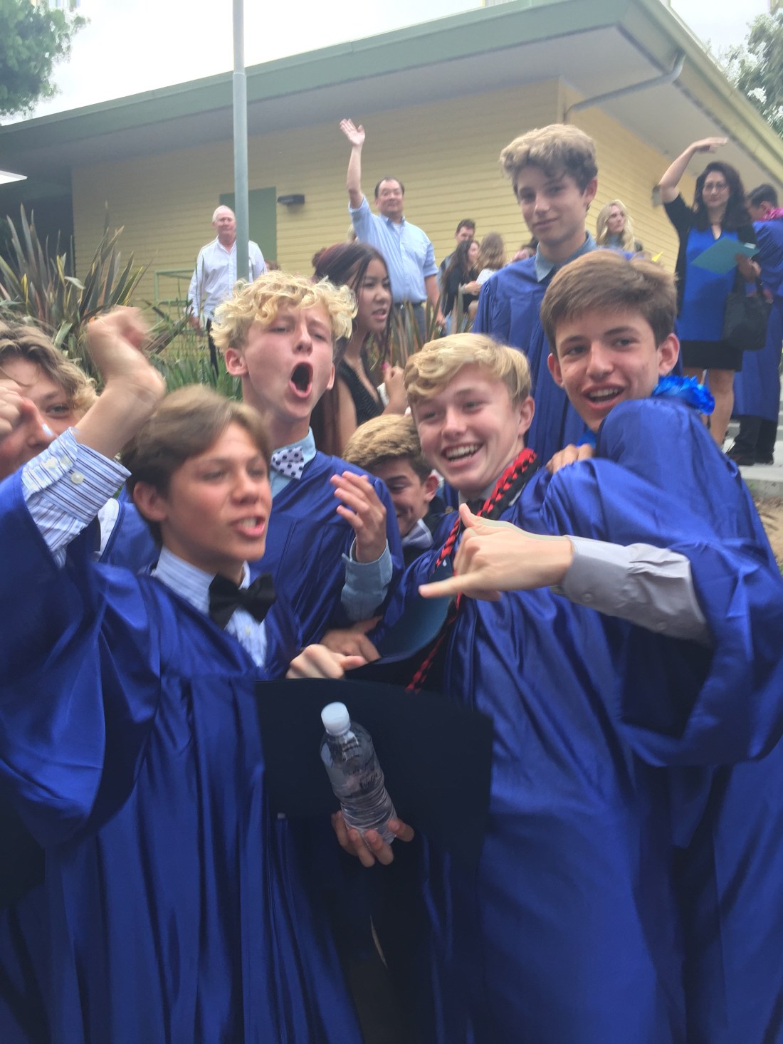 We rocked up at Mira Costa in Emma’s little BMW , we had to , as Tex constantly tells me that my shit box Nissan is inappropriate for this town . Mira Costa will be High School for Tex starting in late August . High school starts at year 9 , I can’t emphasise enough how critical the next 12 months of Tex’s schooling life will have on our future in California. For tonight , it’s about relief and celebration ….and for finally putting names to faces and parents to their offspring.