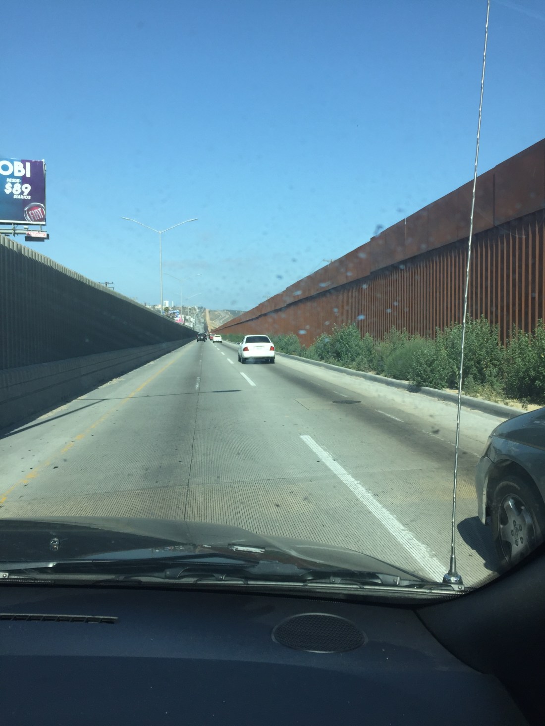 We are told to not carry too much cash in case the federales or poliizia pull us over and decide that taxes are required , but still to have enough so as to keep them happy . As we approach the border crossing the nerves and excitement increase . Here we go boys we are about to cross one of the busiest border crossings in the world . Passports are ready , bladders are full and here comes the gates ….. but wait , where is the queues of cars you always saw in those border reality shows ? We cruise past the 1st gate and nothing , a Mexican border guard barely raises his eyes to nod , we roll around the corner and there it is …. a sign saying we are in Tijuana .