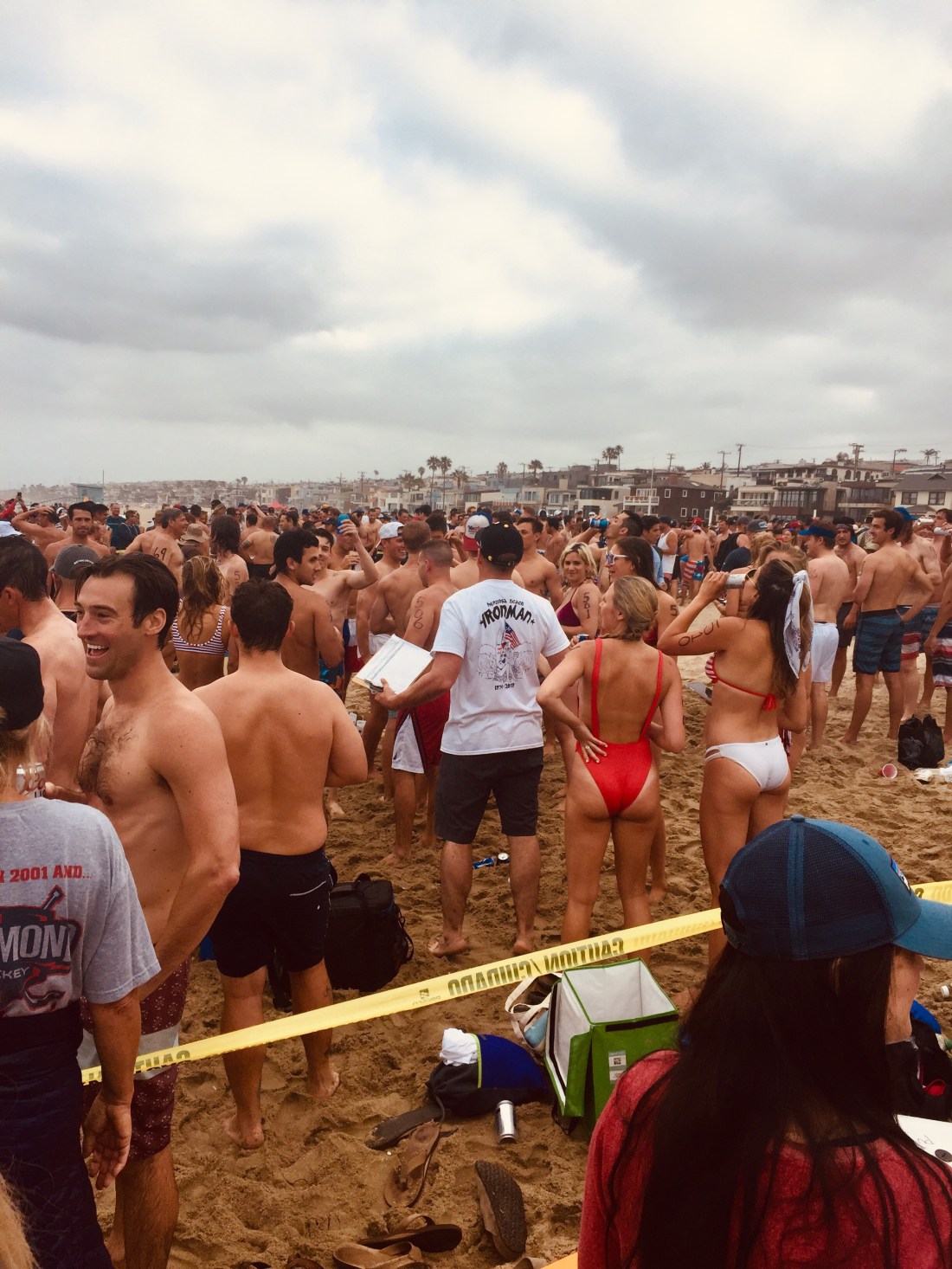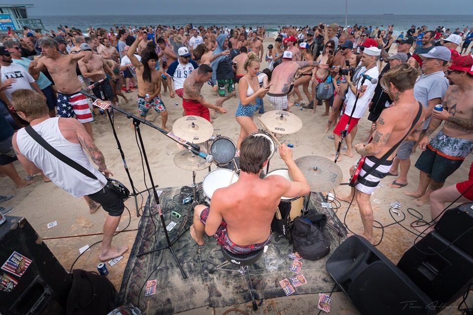 A 30 year+ tradition at the Northern end of Hermosa Beach is an event like no other . There’s a cult like status to this legendary 1 mile run, 1 mile paddle and 6 can scull that has to be seen to be believed .