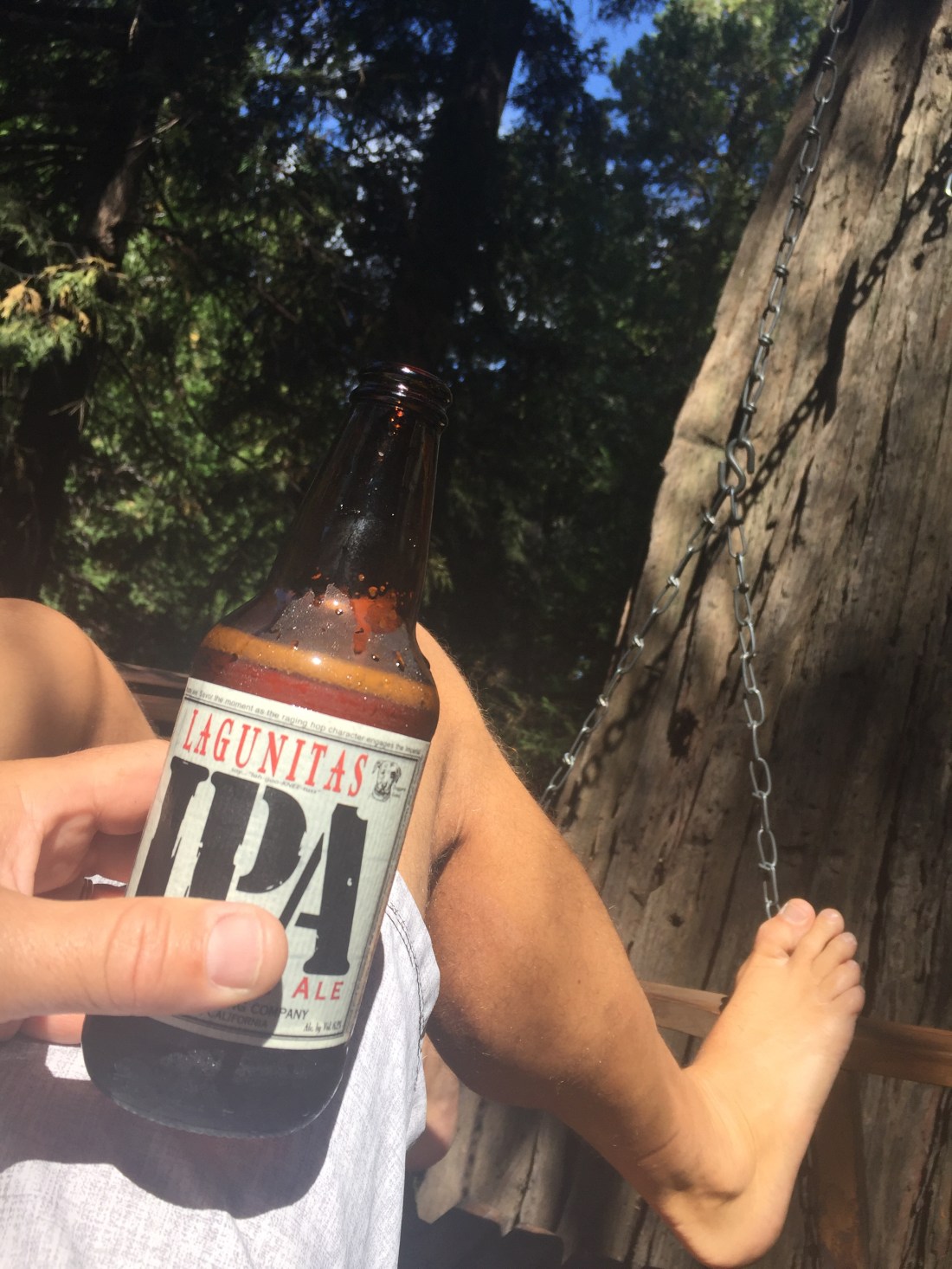 Outside theres a nice little spot under the trees to rock away your stresses whilst you wet the whistle , and I did plenty of that .