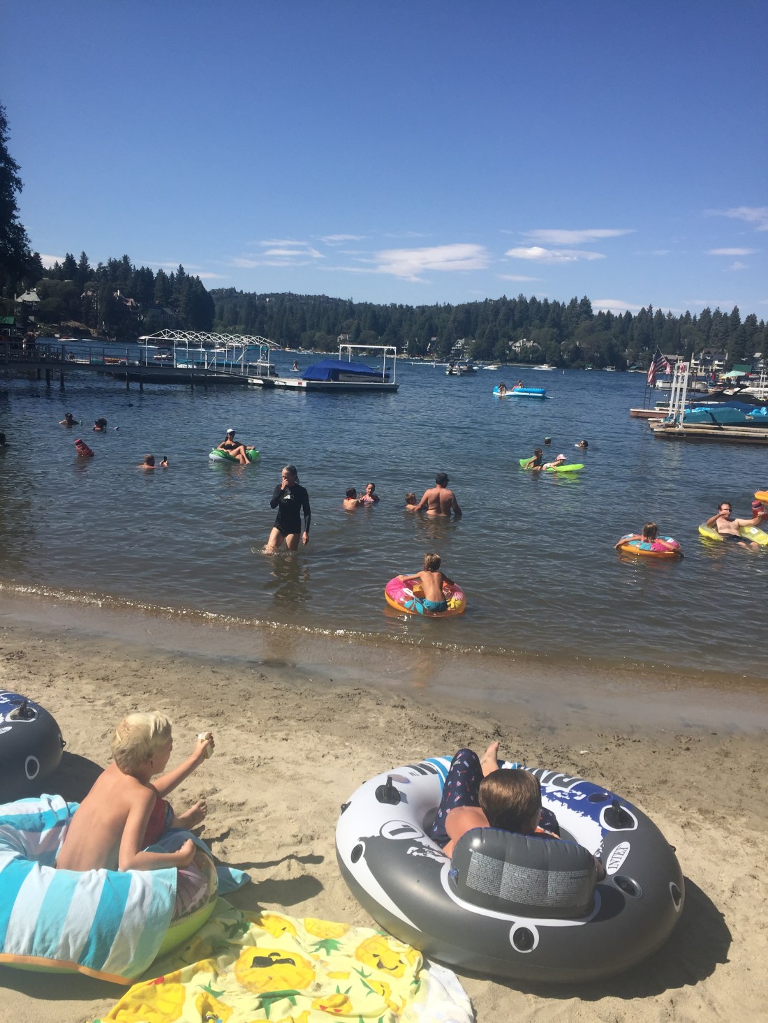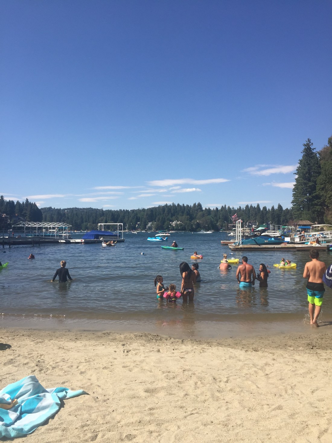 Lake Arrowhead is a beautiful location . A 200 meter walk through large pine trees opens up into a small clearing …and there it is ,a lake that’s not just some dam or oversized pond , it’s bigger ,sprawling and twisting around points with jetty’s , grand old lake houses , hotels ,resorts ,marinas and small sandy beaches .