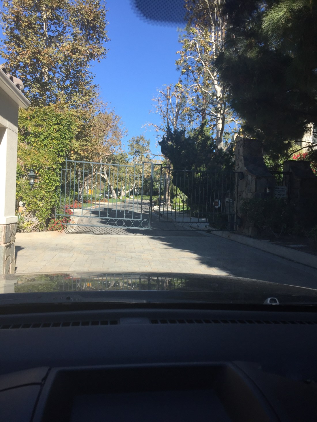 Of course it quickly computes that he can’t understand me . I repeat everything in slow motion . He then rings Ury , but Ury isn’t answering . “Perfect dickhead , I told you to say no .” Eventually I decide to ring him myself , but guess what ? There’s no phone coverage . I decide to drive back a kilometre for better coverage and ring Ury . At’s at this point I have to tell you that this place is beautiful . There’s nothing LA about Bel Air . I know that sounds wrong , because Bel Air is LA ,but this suburb is super exclusive , wealthy , treed and manicured . I haven’t been to the South but I imagine this could be Georgia in the Deep South , plantation style without the the plantations . The gate house is preceded by two security vehicles with one guy leaning up against his car with full swat style attire ,gun and holster clearly visible . It’s later explained to me that this isn’t Australia, people get violently robbed in wealthy areas and the paranoia of its potential is obvious in Bel Air . I get thru , head back to the gate and cruise in with ‘black Betty ‘ ( 2006 Pathfinder ) , she’s outta place , only range rovers ,Porsches and Mercedes here , all black of course .I suppose she’s black ( my Nissan ) , that’s something .