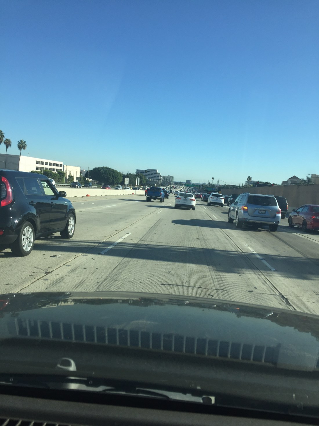 This is what I love about LA ,no matter what day ,what time ,the freeways will be stopped .A 34 km drive at a projected 34 minutes on a Sunday morning in perfect weather soon becomes a 55 minute drive .