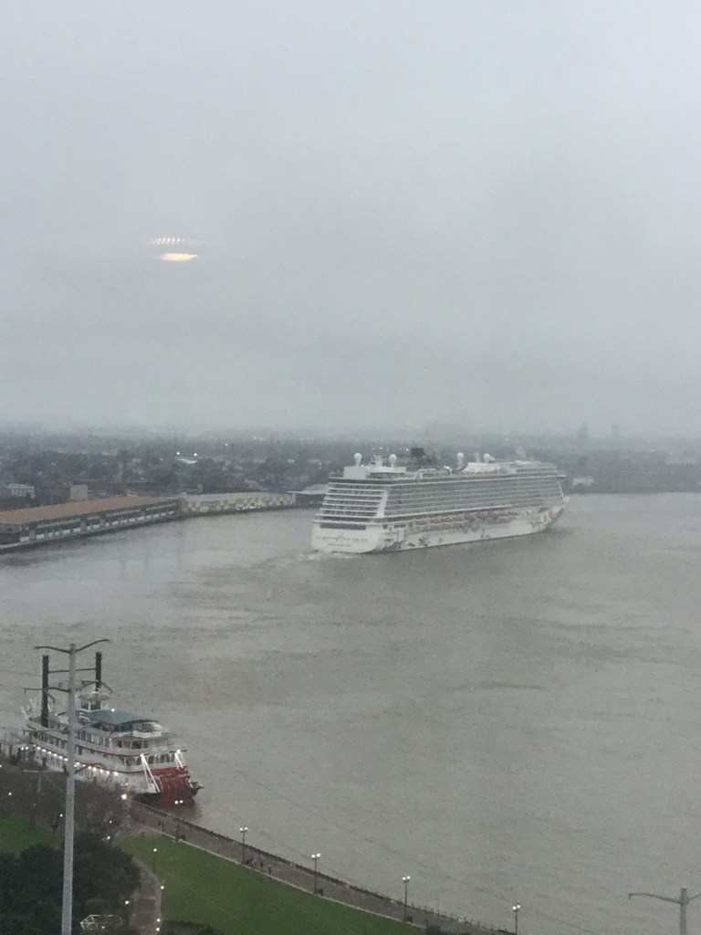 The mighty Mississippi is visible from our hotel window. It’s not called mighty for nothing , it’s huge . It’s bleak down there , cold ,drizzly and not the most inauspicious start to our day . It doesn’t stay that way . The foreshore could be prettier, there’s a lot of industry in the way . The potential for a world class water front is obvious to any traveller but I guess that is the charm of New Orleans , it’s like going back in time .