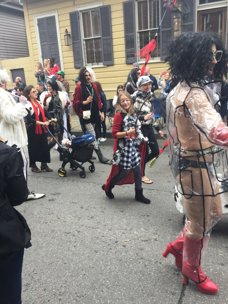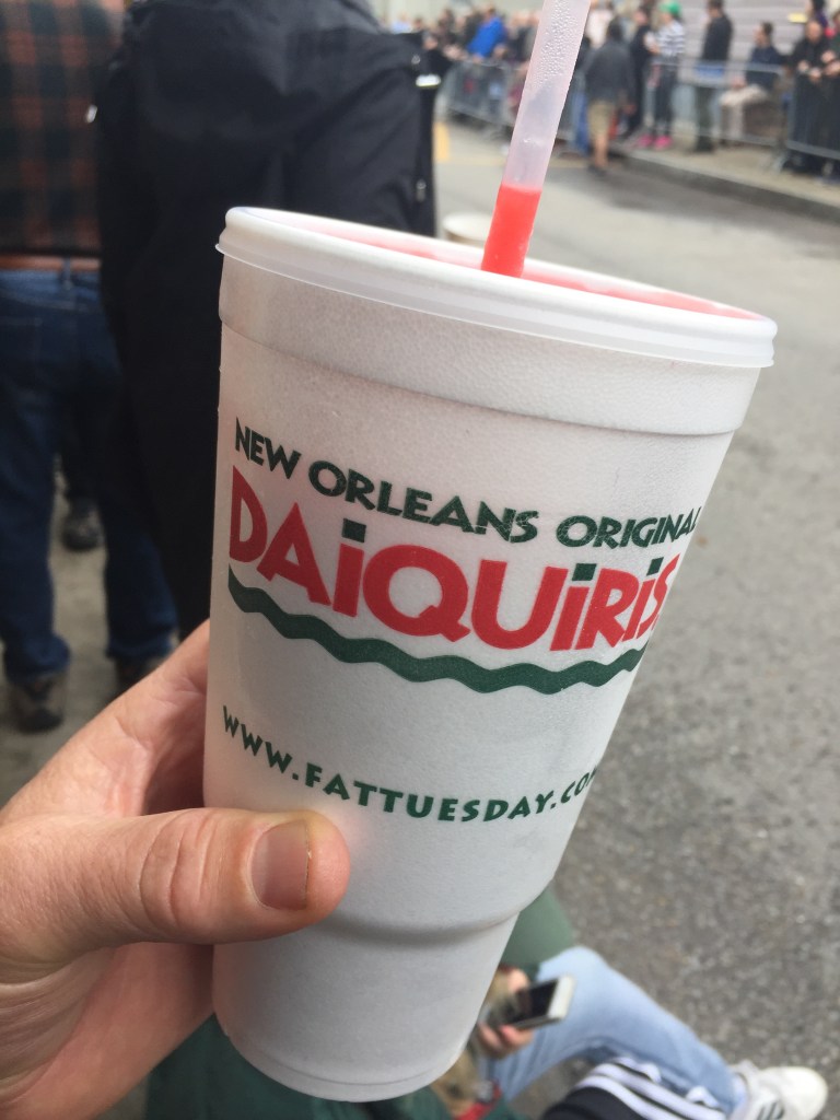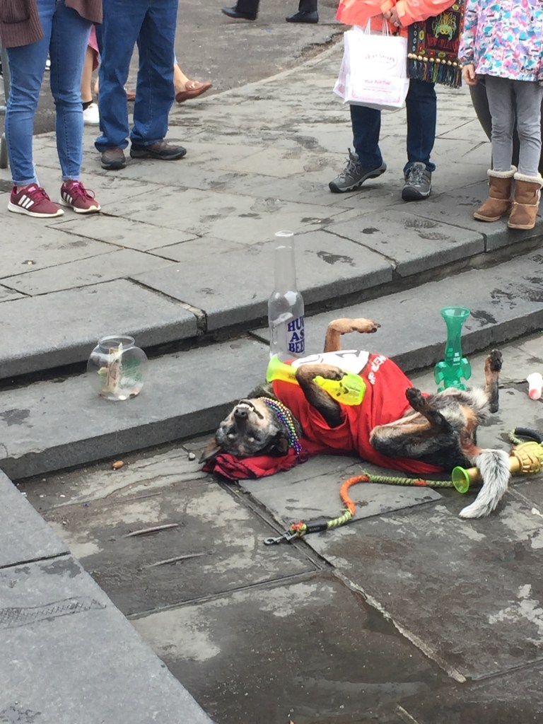 The parades are starting , we’re lucky to be here at this time .Mardi Gras starts next week , but for a few weekends leading into the big event their are lead in parades to set the appetite . We got lucky . We wonder into the French Quarter . This place is late 1800s – 1950s . The streets are made for horse and carts , there’s overhead balcony’s , eclectic shops selling the occult , cigar factory’s , Cajun restaurants and bars aplenty . There’s no outrageous prices on everything that you’d find in Vegas , this joint is unashamedly lower class and I love that shit . 32oz Daiquiris for $11 in styrofoam cups to take away . 3 for 1happy hours , strip clubs , Irish bars , gay bars , everything bars and nearly all with live music ……… fuck it , I might move here . We camp on a corner and suck on our daiquiri whilst the Barkus parade passes by . The punters are dressed up in almost everything , no one cares what you look like , it’s total revelry .This is a parade for dogs , no shit . It’s hilarious , where else are you gonna see this type of thing ? Just when you want to loosen up ,the handbrake grinds down your spirit : the kids . They’re bored , they want to get back to the hotel room to get on their devices . What the fuck have we done to our next generation ?What happened to hanging by your parents side whilst they got loose and listened to some tunes .? That’s right , you had no fucking choice but to suck it up … not this lot .
