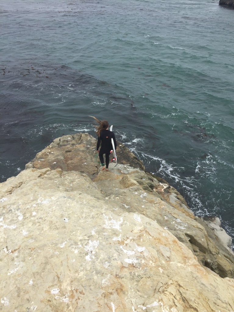 Tex declares that the surf report has Mavericks at 10 – 17 foot today. WTF ! “ Check google maps to see how close to Santa Cruz it is . “ , I ask Tex . “ 43 miles past “ , he says . Ahh , cross that one off for now . We just don’t have the time . We lunch with Leroy’s old school buddy Wesley and his mum Hoki . They moved to Palo Alto , a city south of San Francisco . Santa Cruz is only 90 minutes from San Fran , not unlike Torquay is to Melbourne . Actually there’s some real similarities between Torquay and Santa Cruz with the cool climate surf culture and West coast vibe .We walk the giant pier , check the amusement park and then we settle my anxiety at missing out by driving up the point to check Steamer Lane . I had this fear that the increasing wind would blow out the lineup and the waves I could see rolling along the cliff edge would soon be a mess . I just wanted to get a photo and see this place work , fortunately the wind held off just enough .After talking to a local we jump the railing , walk along the sandstone cliff and follow a young guy and girl to the jump off spot . A clean grey wave wraps around the point , pushing through kelp . It looks rideable .It’s full 3/4 ml wetsuits and booties to ride this wave even though we are about to start summer . It’s a classic amphitheatre set up with the wave running along the cliff with a fenced off viewing point sitting right above the surfers . Steamer Lane , I can definitely see this joint pumping and know why it deserves its reputation .